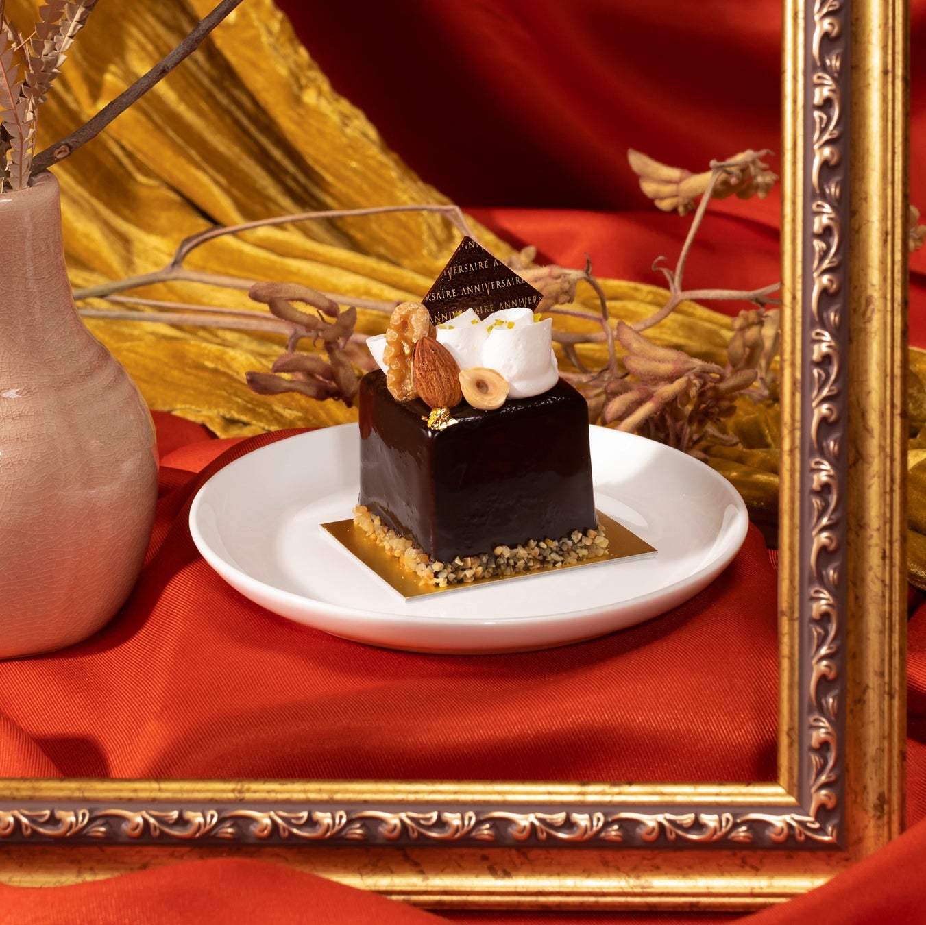 香ばしいナッツを飾ったアニヴェルセルカフェ定番の濃厚チョコレートムースです。