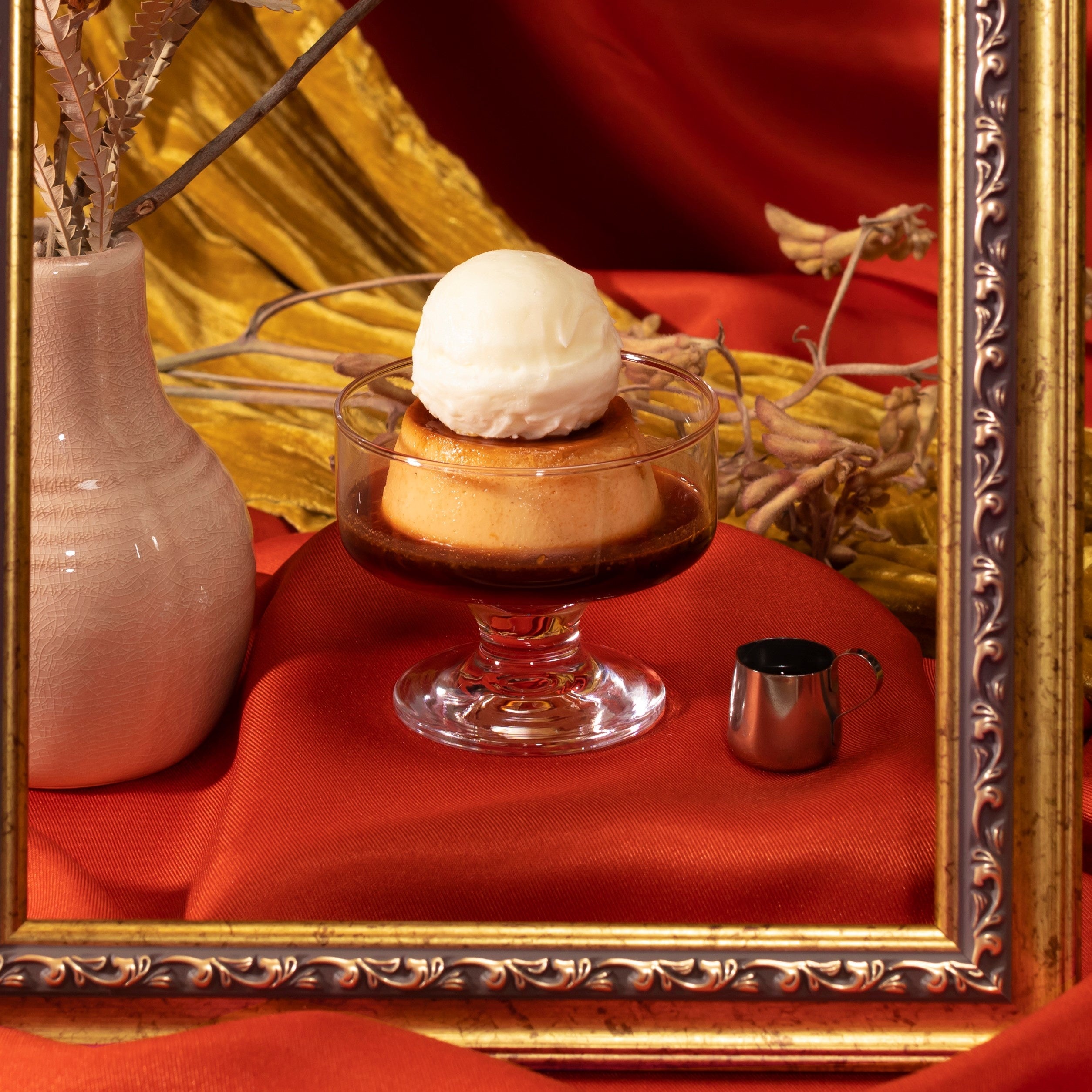 バニラビーンズをたっぷりと使用したプリンです。バニラアイスとほろ苦いキャラメルを一緒にお楽しみください。