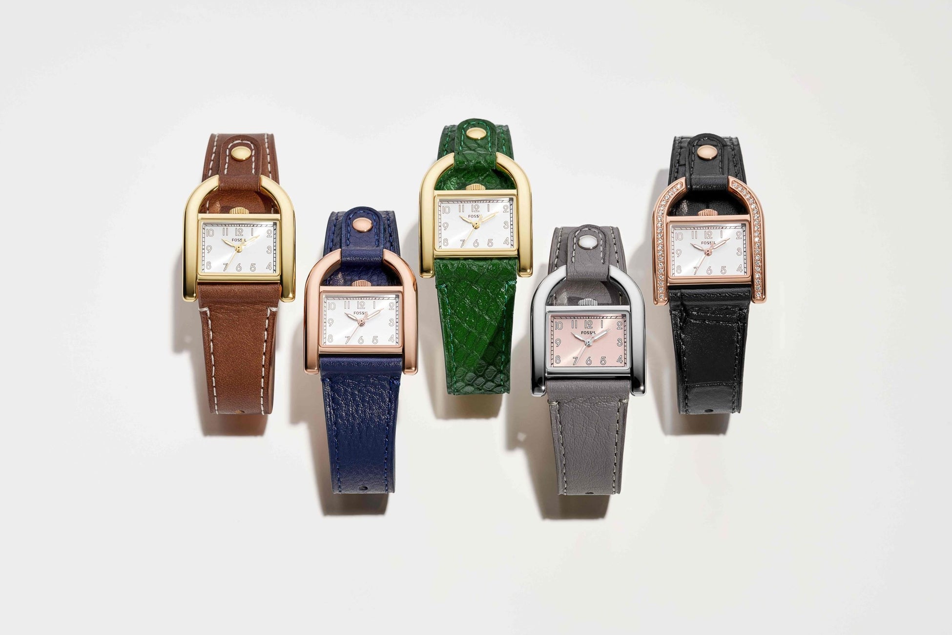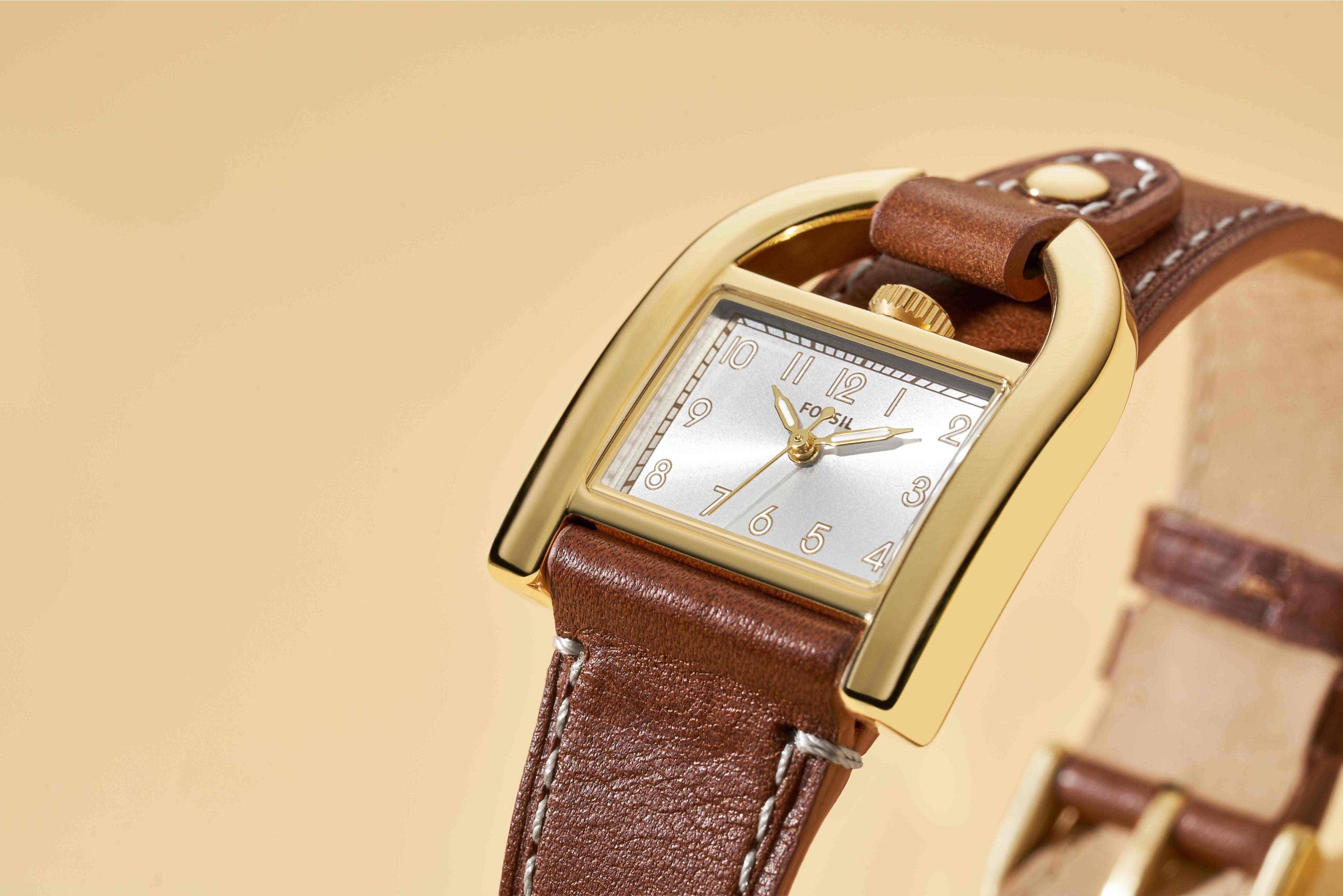 フォッシルのコレクションにしばしば採用される「乗馬」にインスピレーションを得たHARWELL。古代ヨーロッパから幸運を招くラッキーモチーフとして知られている馬蹄形(ばていけい)のケースに、乗馬のサドルをイメージしたレザーストラップがエレガントで洗練されたタイムピース。