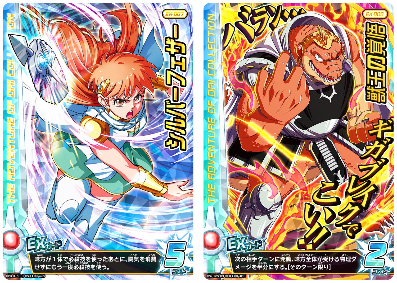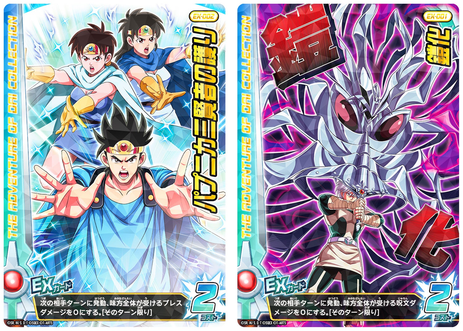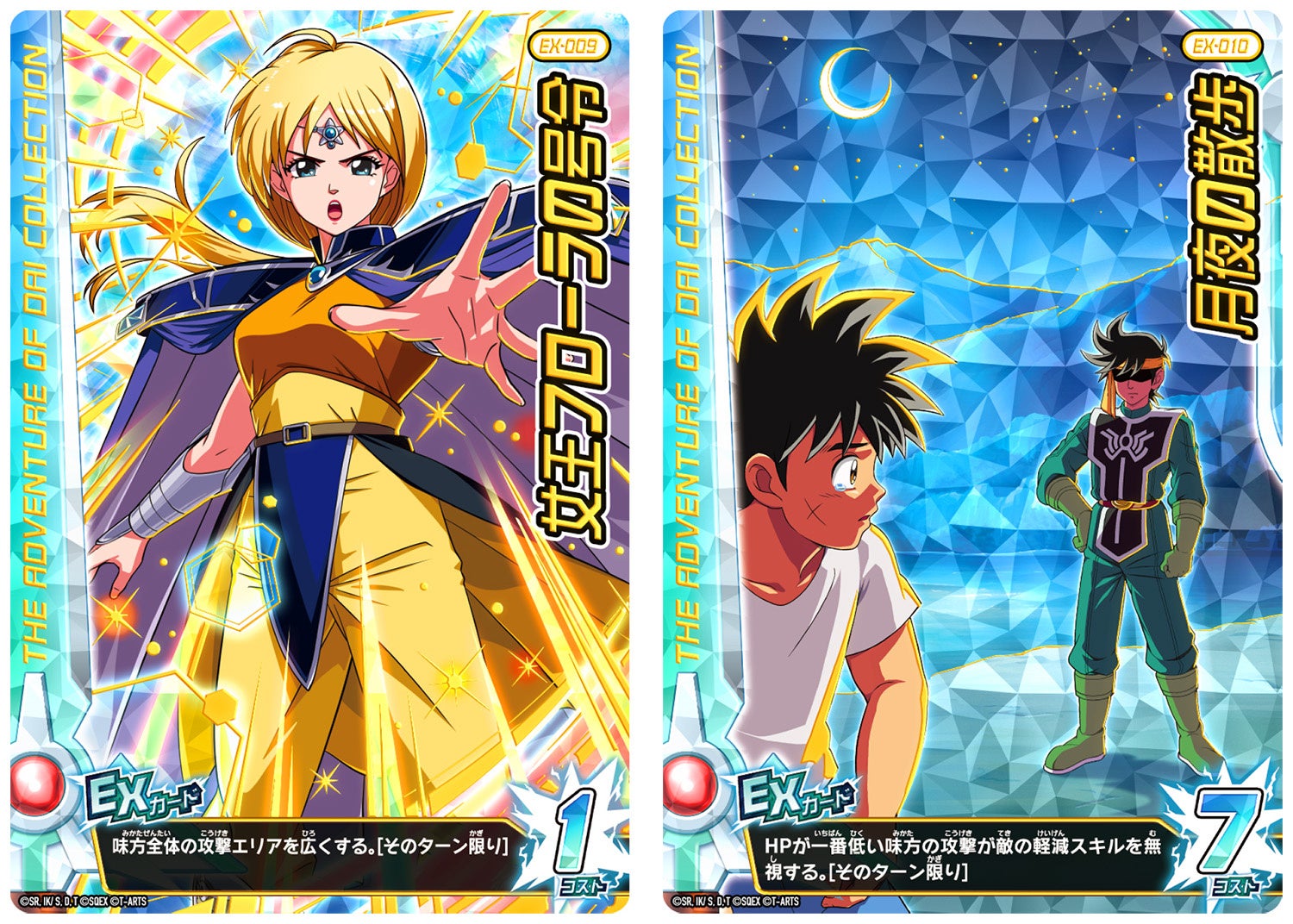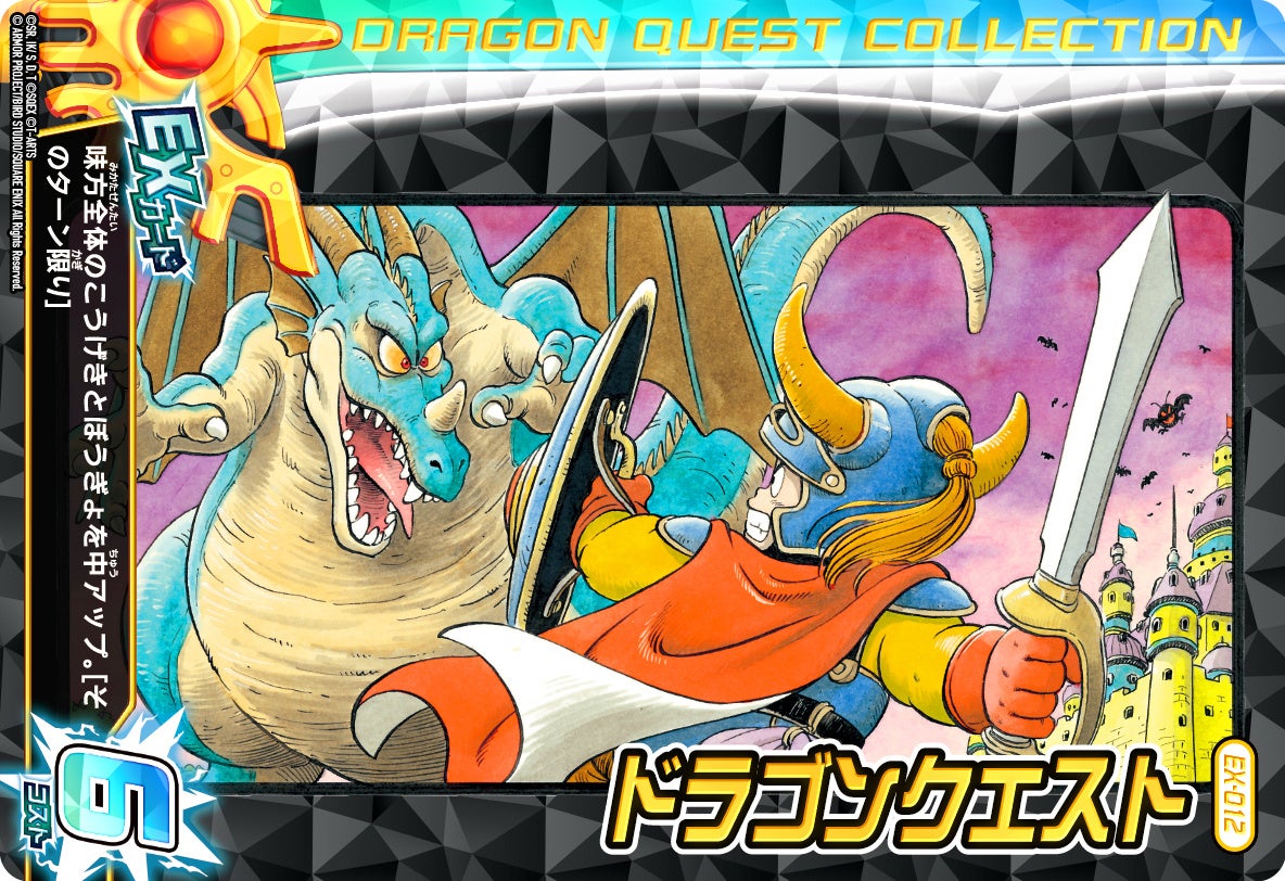 「エクスブレイク1弾」では、13種類の「EXカード」が登場し、バトル以外のシーンをイメージした描き下ろしイラストのカードや、史上初となる「ドラゴンクエストシリーズ」のパッケージイラストを使用したカードもラインアップされています。