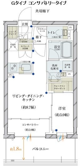 1LDK+WTC 専有面積34.50㎡(約11.43坪) バルコニー面積/8.28㎡(約2.50坪)