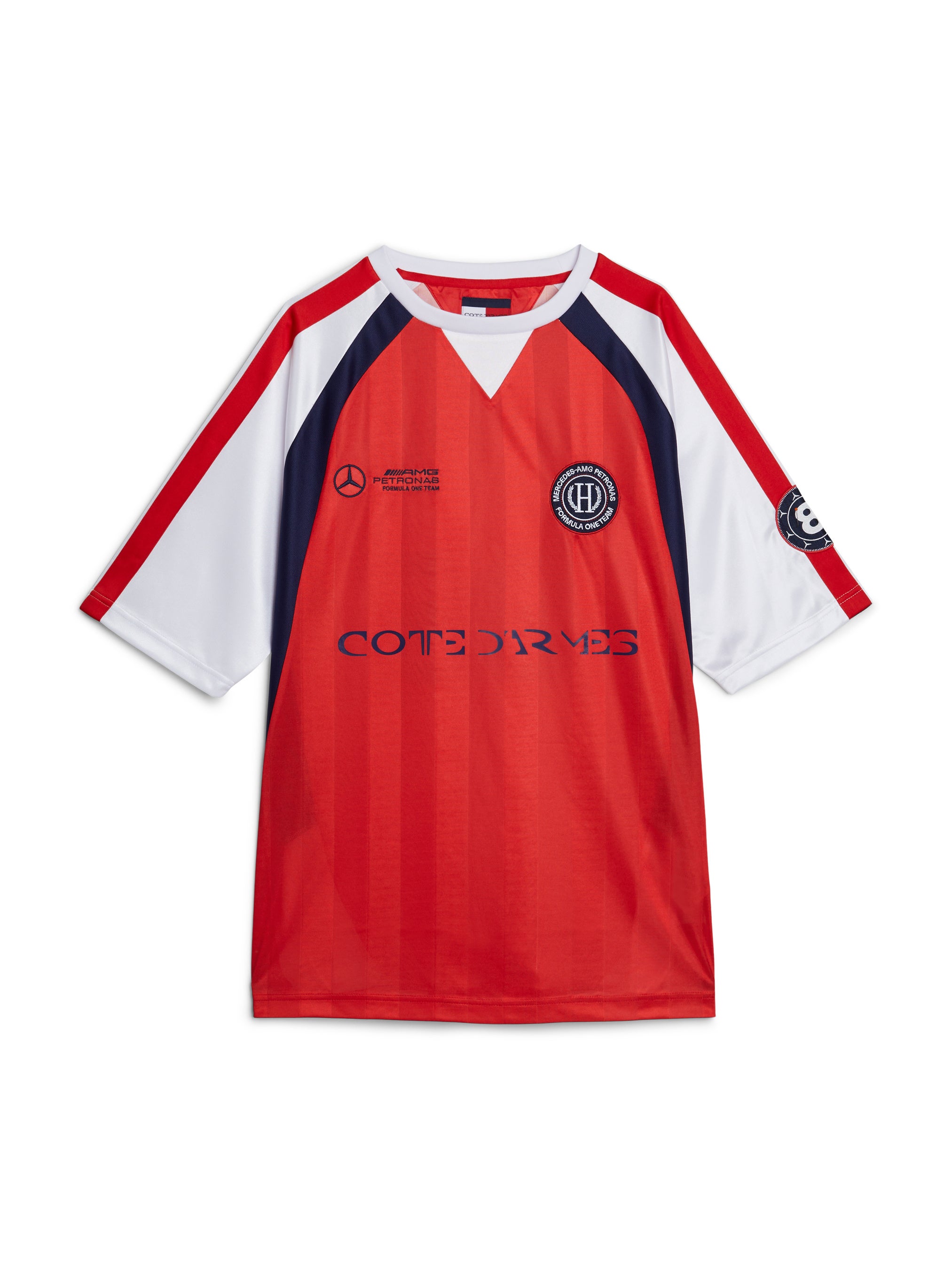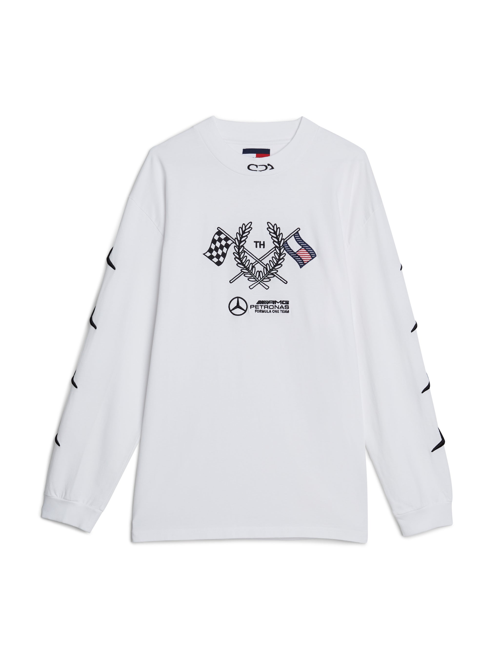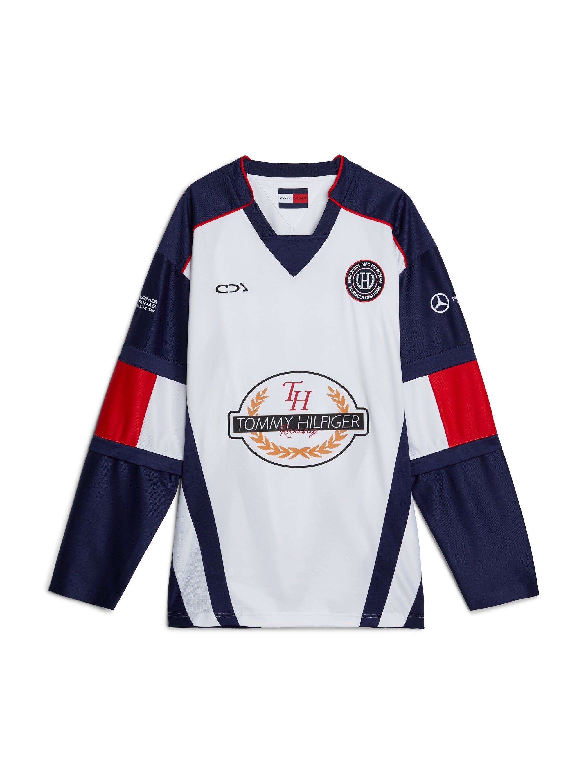 モータースポーツにインスパイアされたこの12スタイルから成るライフスタイル・コレクションは、ヘリテージを見つめ直しながらも、未来を形作っています。カラーブロックが特徴のバーシティジャケット、刺繍入りのチノパンツ、ドライバーのレーシングナンバーをあしらったサッカーシャツなど、スポーティなテイストにまとめられたアイテムで、ルースが革新的な考えを持つデザイナーであることを証明しています。F1™カーのダッシュボードをイメージしたケアレーベルのプリントがTシャツにあしらわれ、ファッションとスポーツを融合させたシルエットのラインナップにアイスホッケージャージが加えられました。コラボレーションの全アイテムには、トミー ヒルフィガー、メルセデスAMG F1™チーム、ルースのファッションブランドであるCotte D'Armes(コット ダルム)のロゴがあしらわれています。