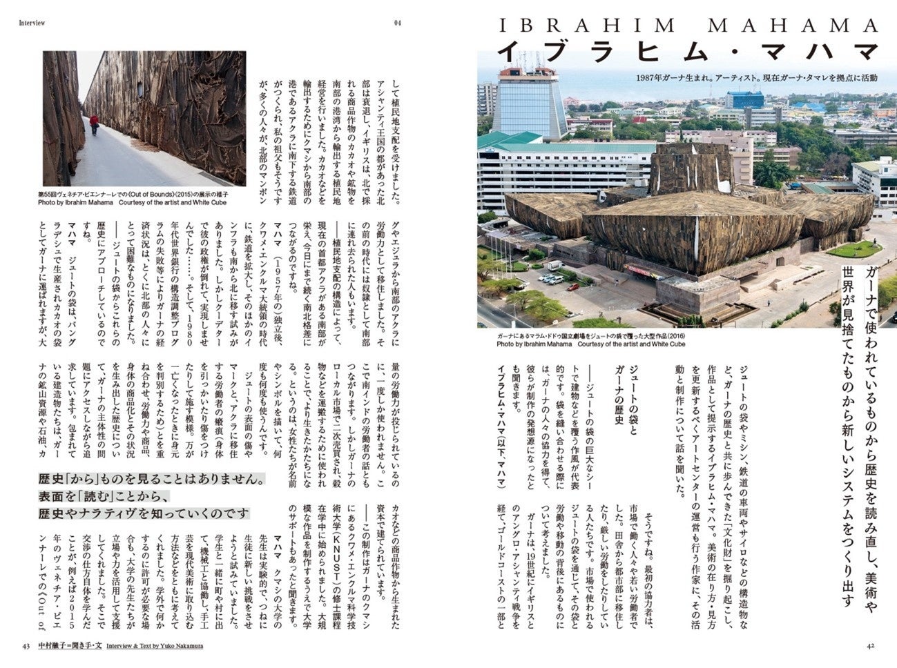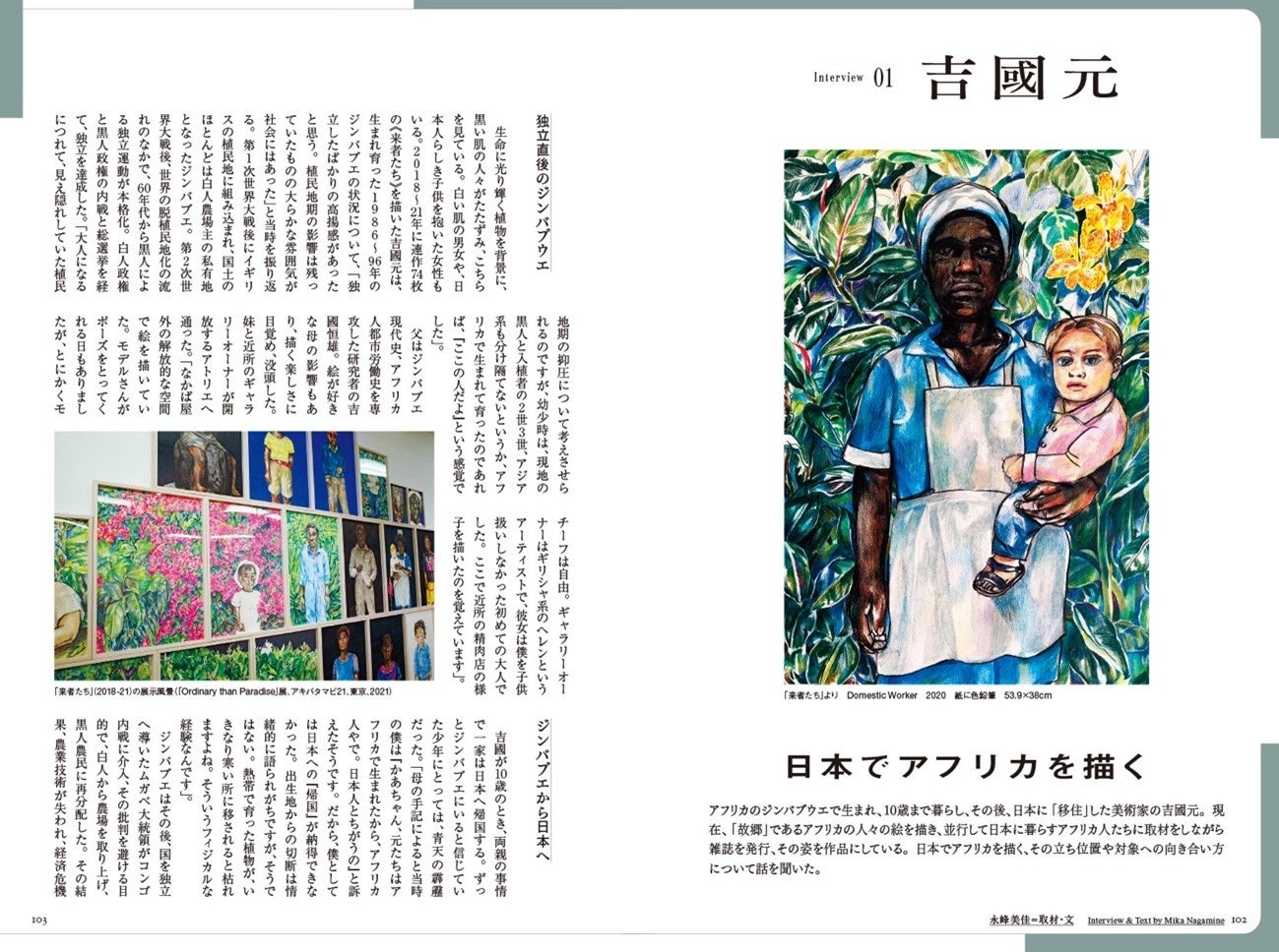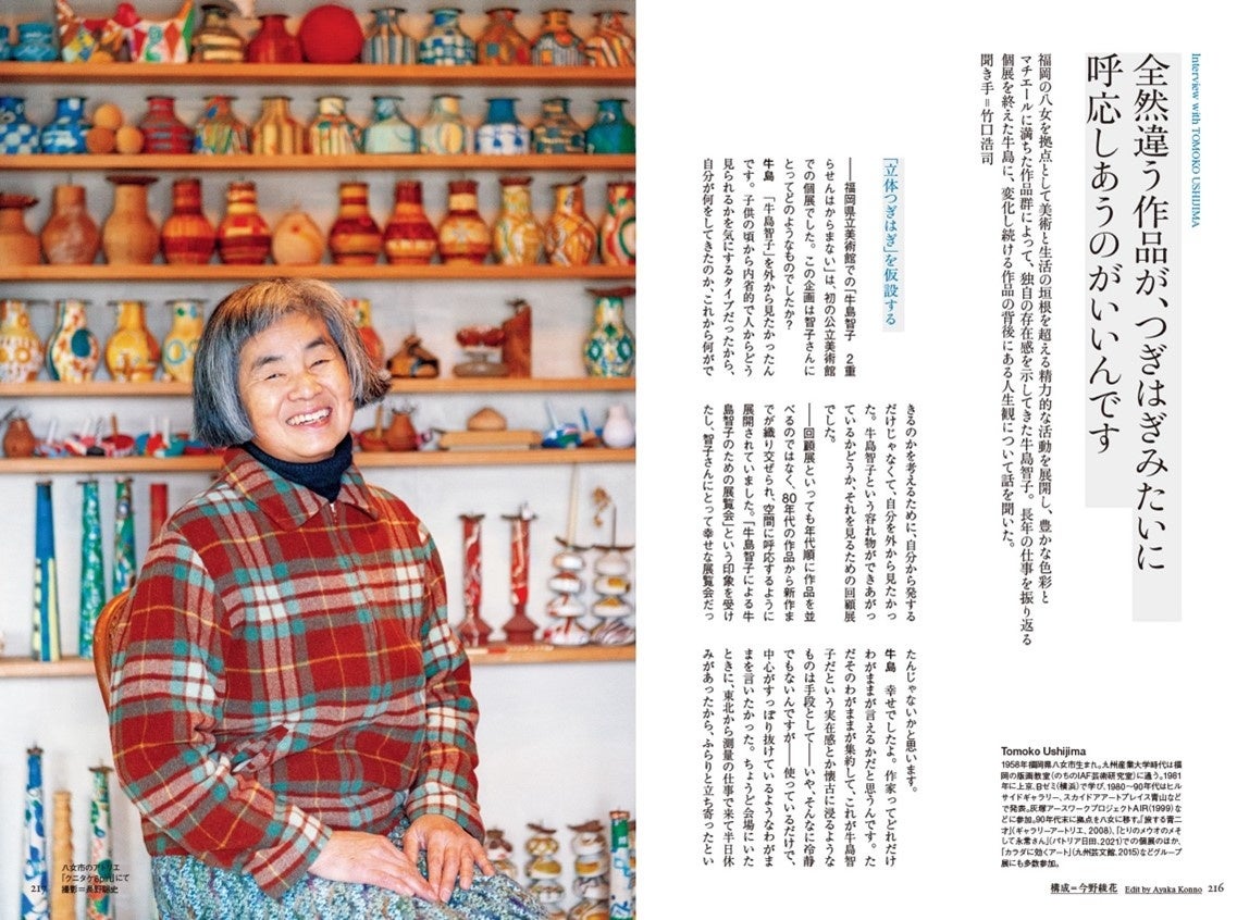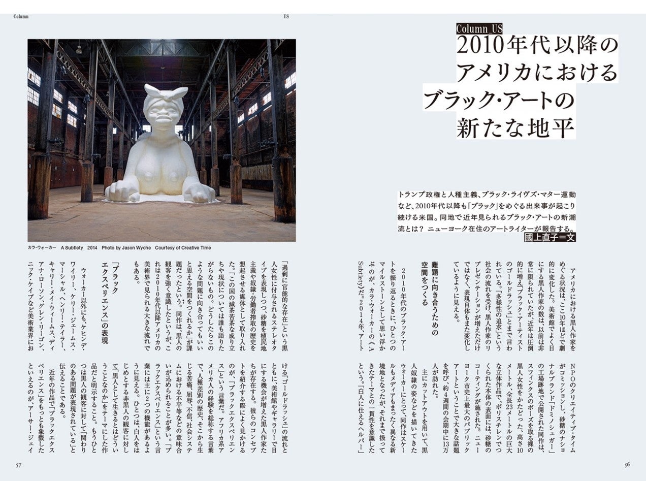 また、福岡県立美術館で40年にわたる作家活動を「回顧」する個展を行った牛島智子のロングインタビュー、マイケル・ハイザーの《シティ》の公開等で再び注目を集める「ランド・アート」を先住民のアーティストの作品から読み替える原田真千子の論考を掲載。