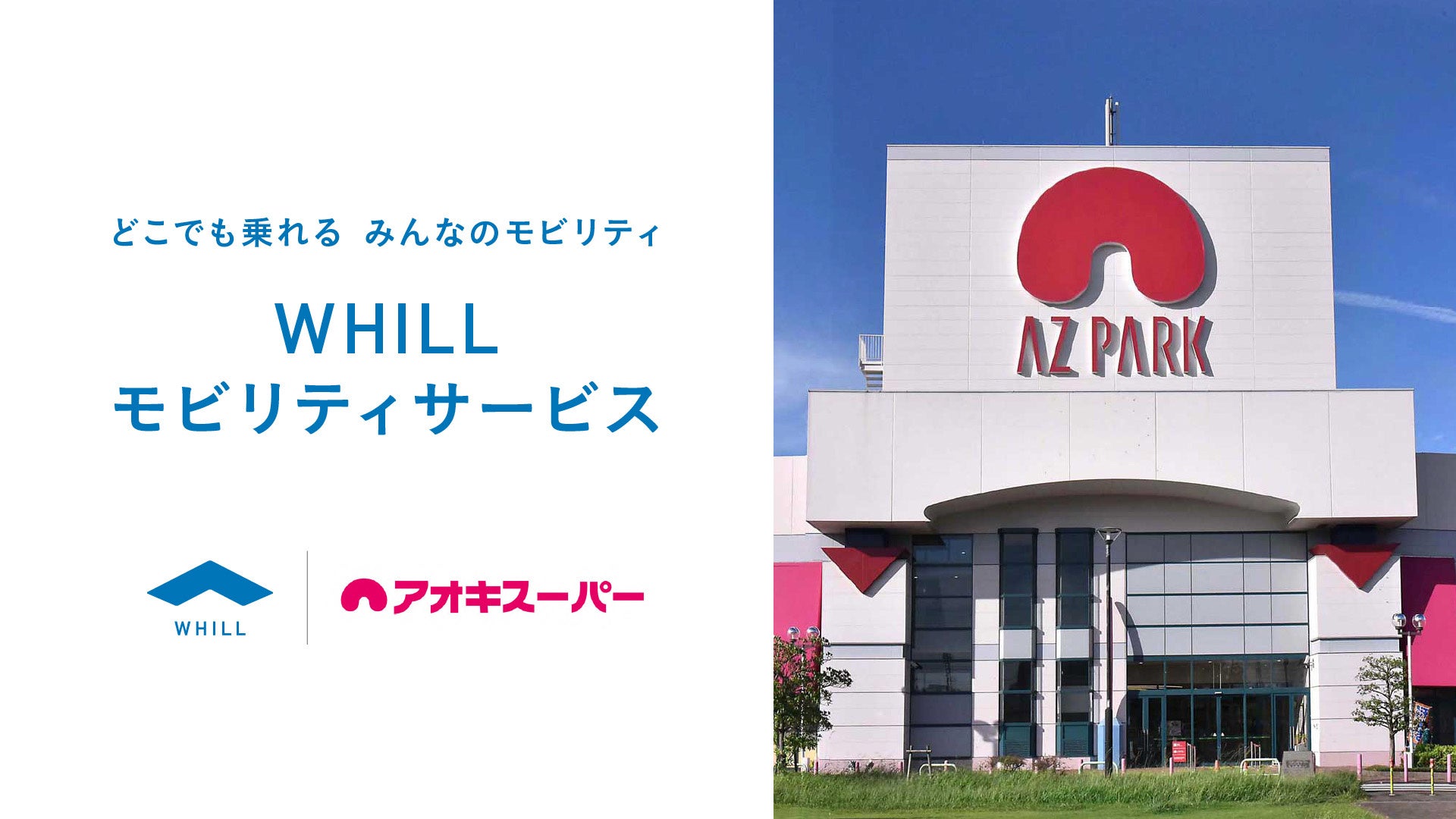株式会社アオキスーパー(本社:愛知県名古屋市、以下「アオキスーパー」)とWHILL株式会社(本社:東京都品川区、以下「WHILL社」)は、誰もが快適に買い物できる店づくりを目指し、免許不要で歩行領域を走行する近距離モビリティ『WHILL(以下「ウィル」)』をアオキスーパーが運営している大規模商業施設『ショッピングセンターアズパーク』(名古屋市中川区)に導入すると同時に、福利厚生の面においても従業員、及びご家族の介護における負担軽減やQOL(Quality of Life、生活の質)向上を目的にウィルを活用することで協業いたします。高齢化や多様化が加速する中、お客様・従業員・従業員の家族を含めて誰もがいつまでも快適に暮らし続けられる地域社会の構築を目指す目的で、福利厚生におけるウィルの採用は、東海地方で初の取り組みです。
