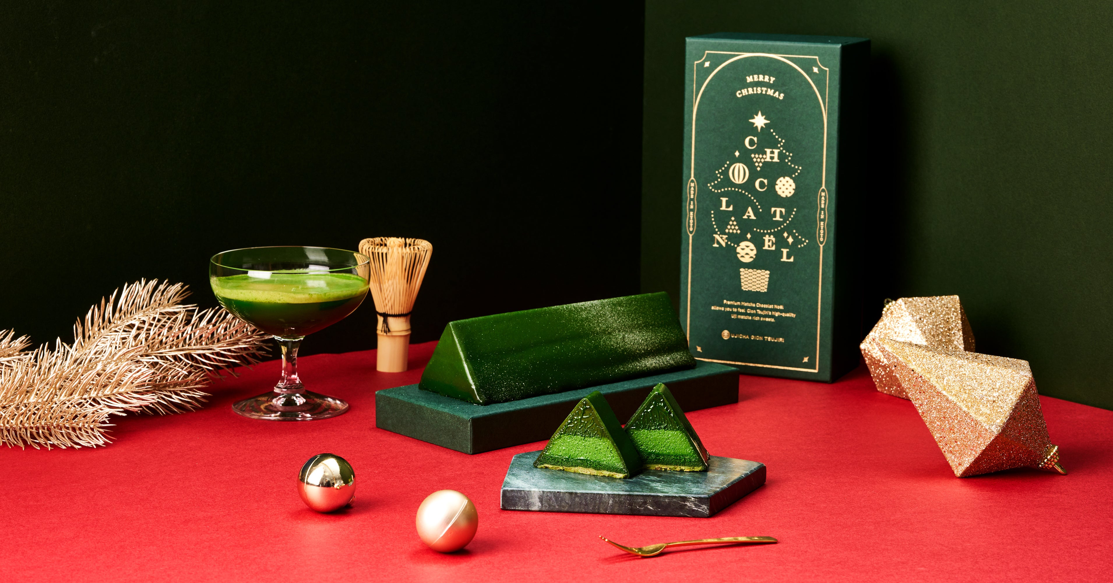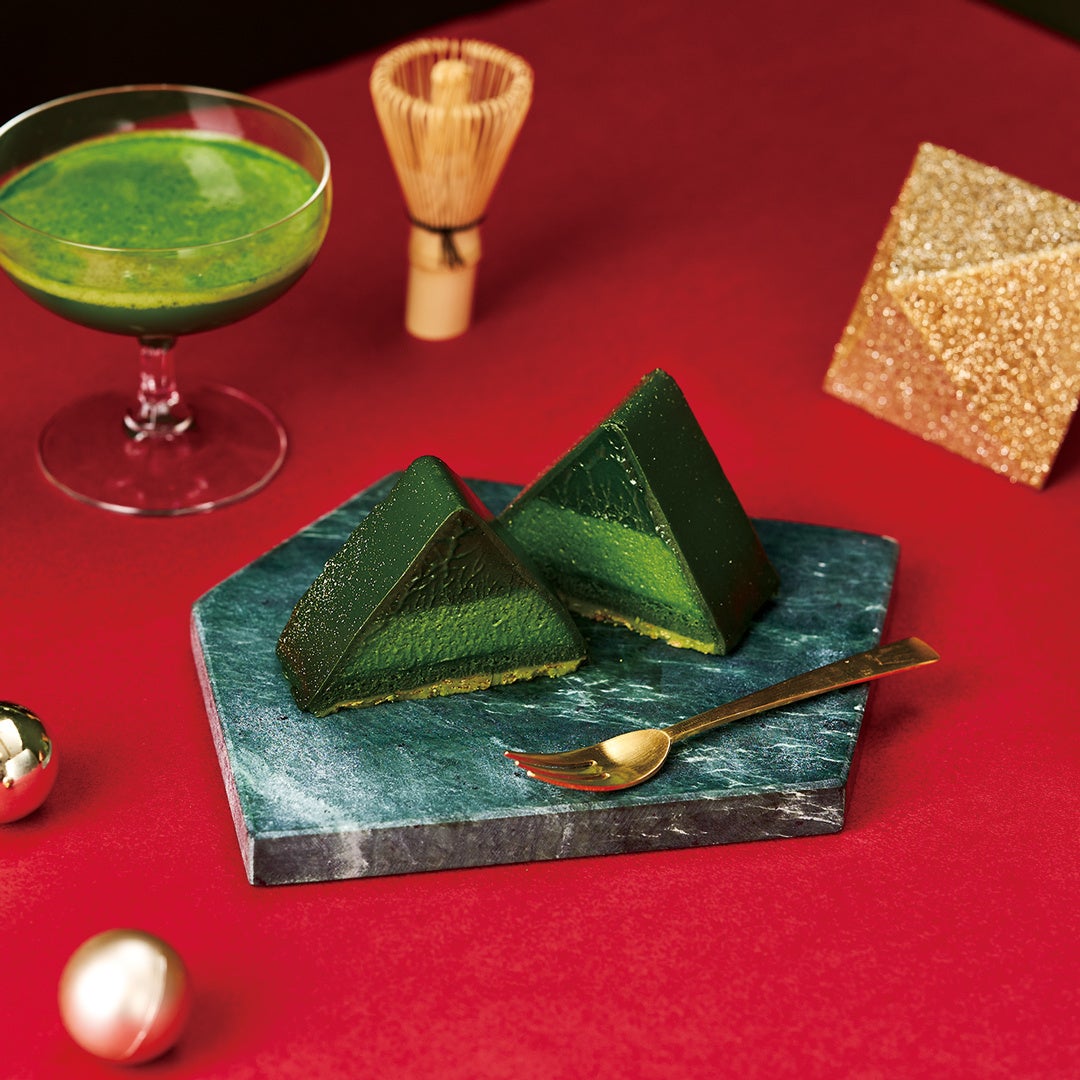 今年の新作は、2021年に販売し、抹茶好きが“一口で恋に落ちる”と話題を呼んだ、従来比2倍となる濃厚な「抹茶ショコラムース」を使用したクリスマスケーキがさらにパワーアップし、従来比3倍となる抹茶を使用した「お濃茶ショコラムース」そして、その濃厚な旨味と甘味を引き立てる抹茶4種を組み合わせた、日本で初となる“5種類の抹茶”を堪能できるクリスマスケーキが誕生いたしました。