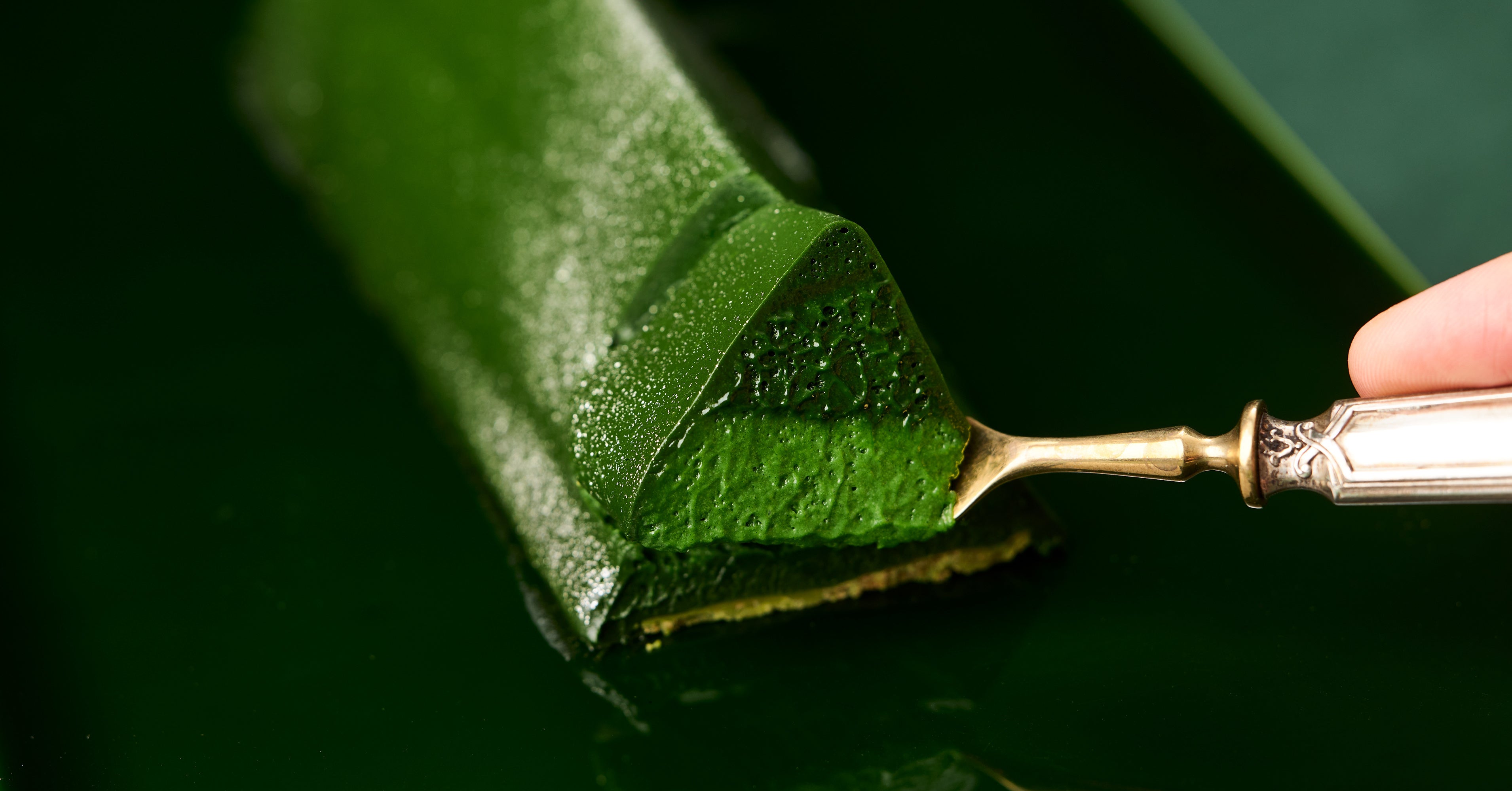 高級ランクの抹茶だからこそ成し得た、従来比3倍の濃厚なお濃茶ショコラムース。その旨味と甘味、コクに圧倒されるほど極限の濃厚感。