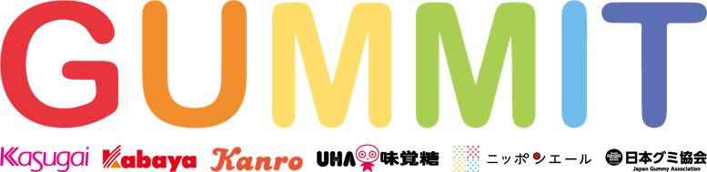 GUMMIT:日本グミ協会とグミ・キャンディーを扱う、春日井製菓株式会社(本社:愛知県名古屋市、代表取締役社長:春日井 大介)、カバヤ食品株式会社(本社:岡山市北区、代表取締役社長:野津 基弘)、カンロ株式会社(本社:東京都新宿区、代表取締役社長:三須 和泰)、UHA味覚糖株式会社(本社:大阪市中央区、代表取締役社長:山田 泰正)、ニッポンエール(全国農業協同組合連合会(本所:東京都千代田区、代表理事理事長:野口栄)の商標登録ブランド)の複数の企業・ブランドからなる「グミのサミット」。