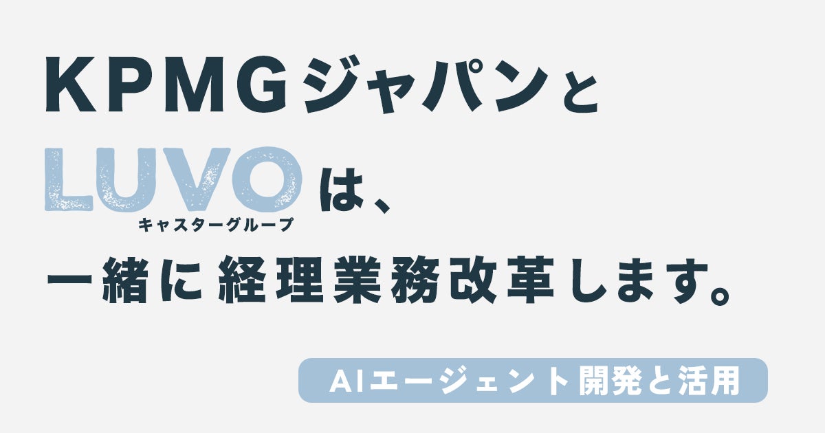 株式会社キャスター(本社:東京都千代田区、代表取締役 中川祥太、以下「キャスター」)のグループ会社である株式会社LUVO(本社:東京都目黒区、代表取締役:狗巻 勝博、以下「LUVO」)は、KPMGのメンバーファームであるあずさ監査法人(本部:東京都新宿区、理事長:山田裕行)との協業を開始しました。本協業では、AIを活用した経理業務改革ソリューション開発、共同提案、ならびに業務改革支援サービスの提供に向けた取り組みを進めてまいります。