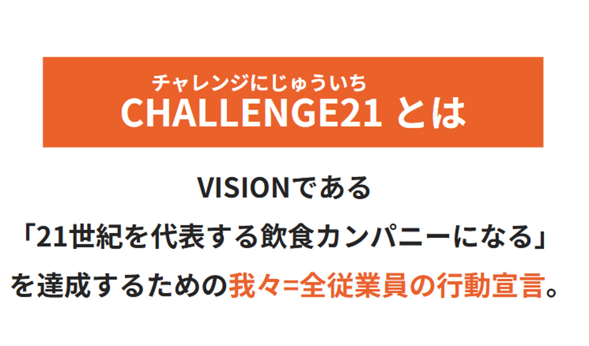 21世紀を代表する飲食カンパニーになる~CHALLENGE21~を改定発表