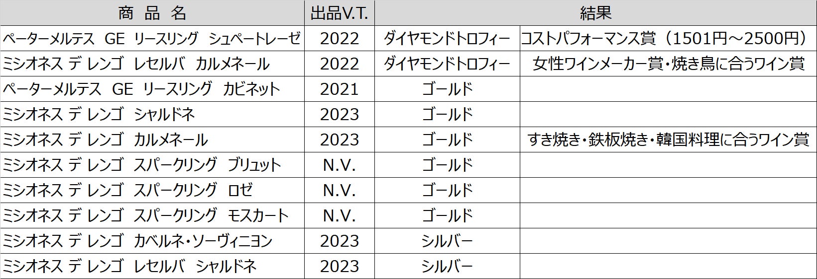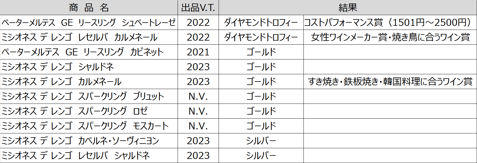 ■受賞ワイン一覧