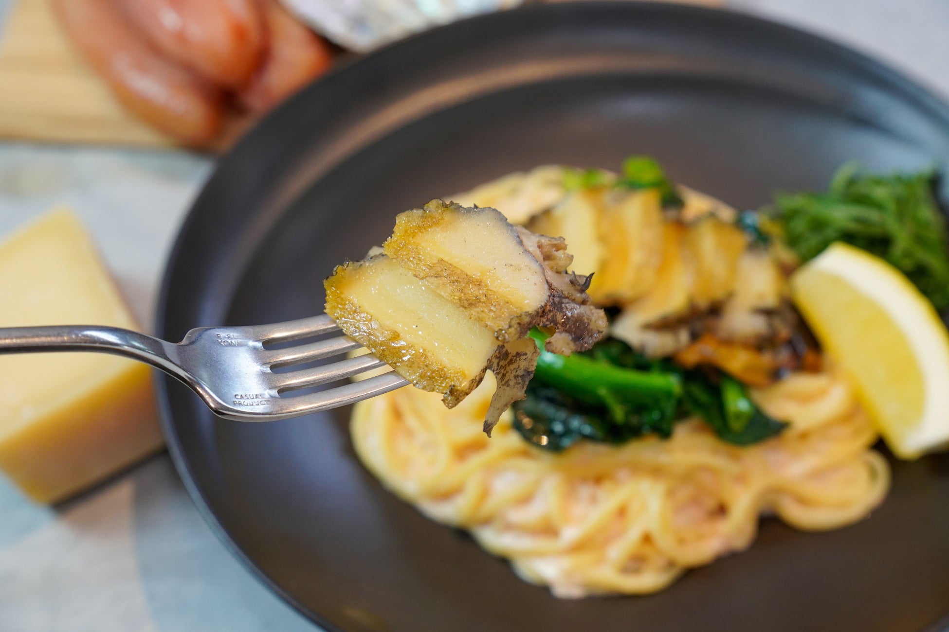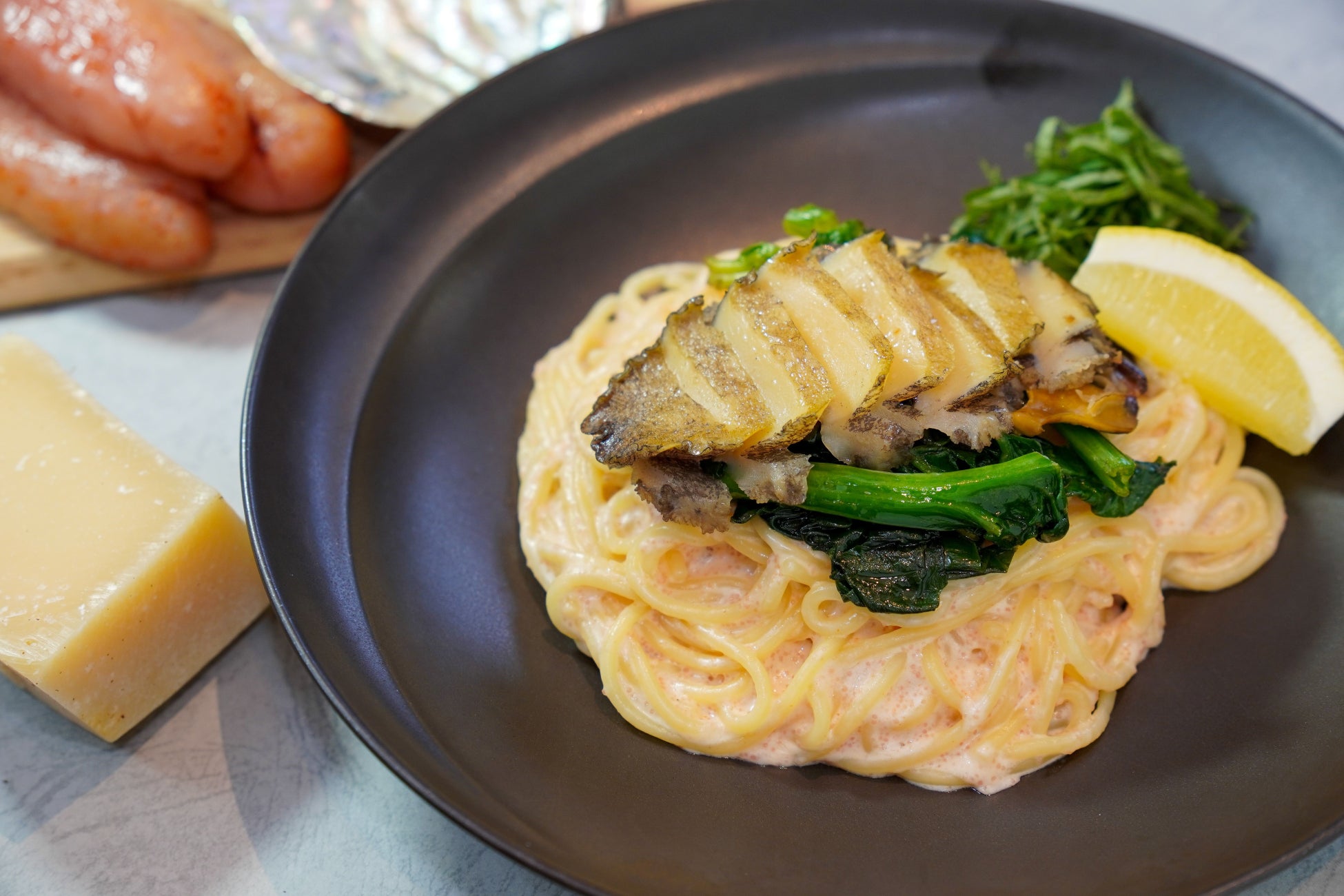 特別価格にて再販決定!炎のチーズパスタ新作!アワビをまるごと使ったクリーミーチーズ明太子パスタ