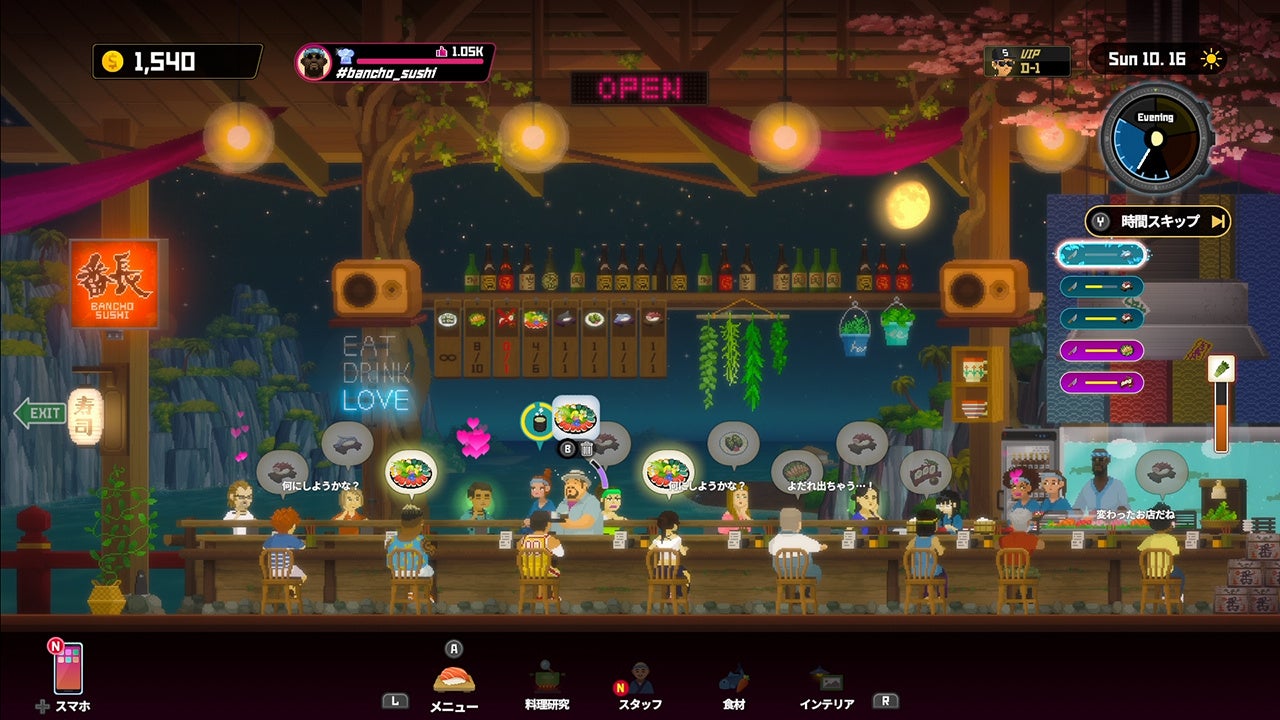 ・お客さんをもてなそう!:集めた食材を使って、あなた自身の寿司レストランを経営しましょう。