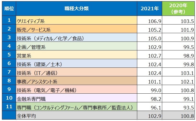 転職サービス「doda」、コロナ前後での「決定年収上昇率ランキング(職種版)」を発表 1位のクリエイティブ系は、コロナ前から決定年収が約7%上昇