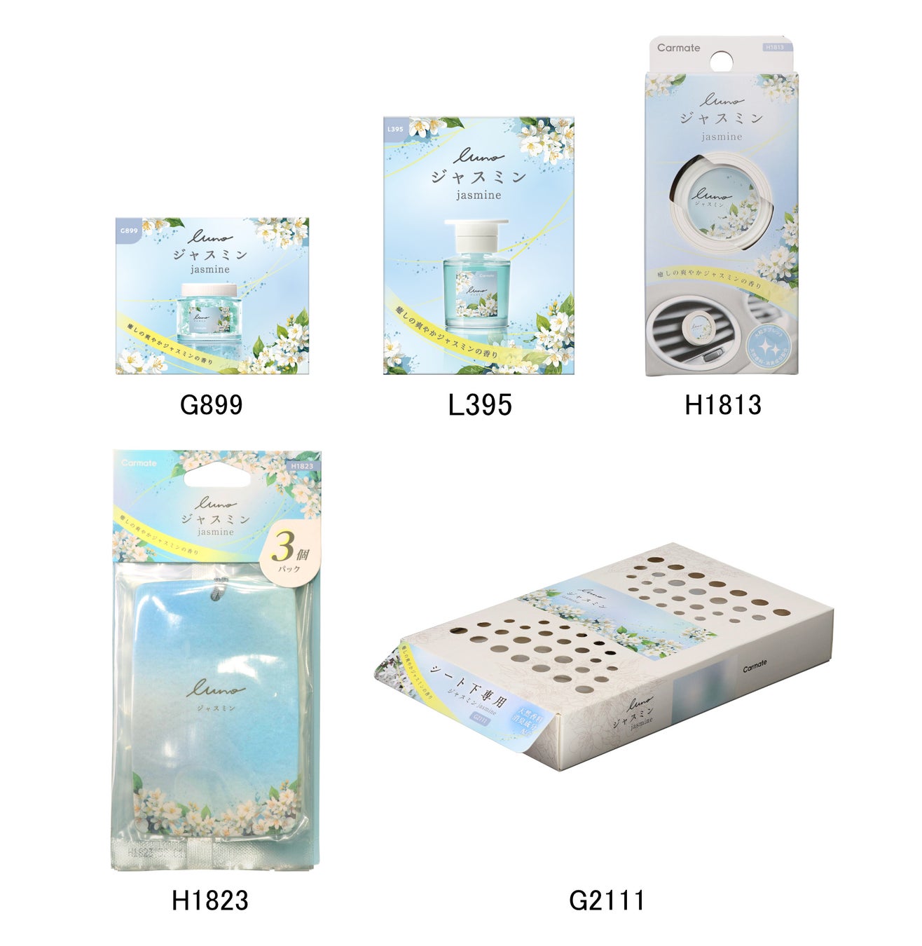 株式会社カーメイト(本社:東京都豊島区)は、5月13日(火)にナチュラルフレグランスシリーズ「luno(ルーノ)」より、季節の香りシリーズ第3弾となる「ジャスミンの香り」のカーフレグランスを数量限定で発売しました。人気のゲル、香り立ちの良いリキッド、エアコン取り付け、吊り下げ、シート下の5タイプをラインアップ。各製品の特長等詳細は以下をご覧ください。