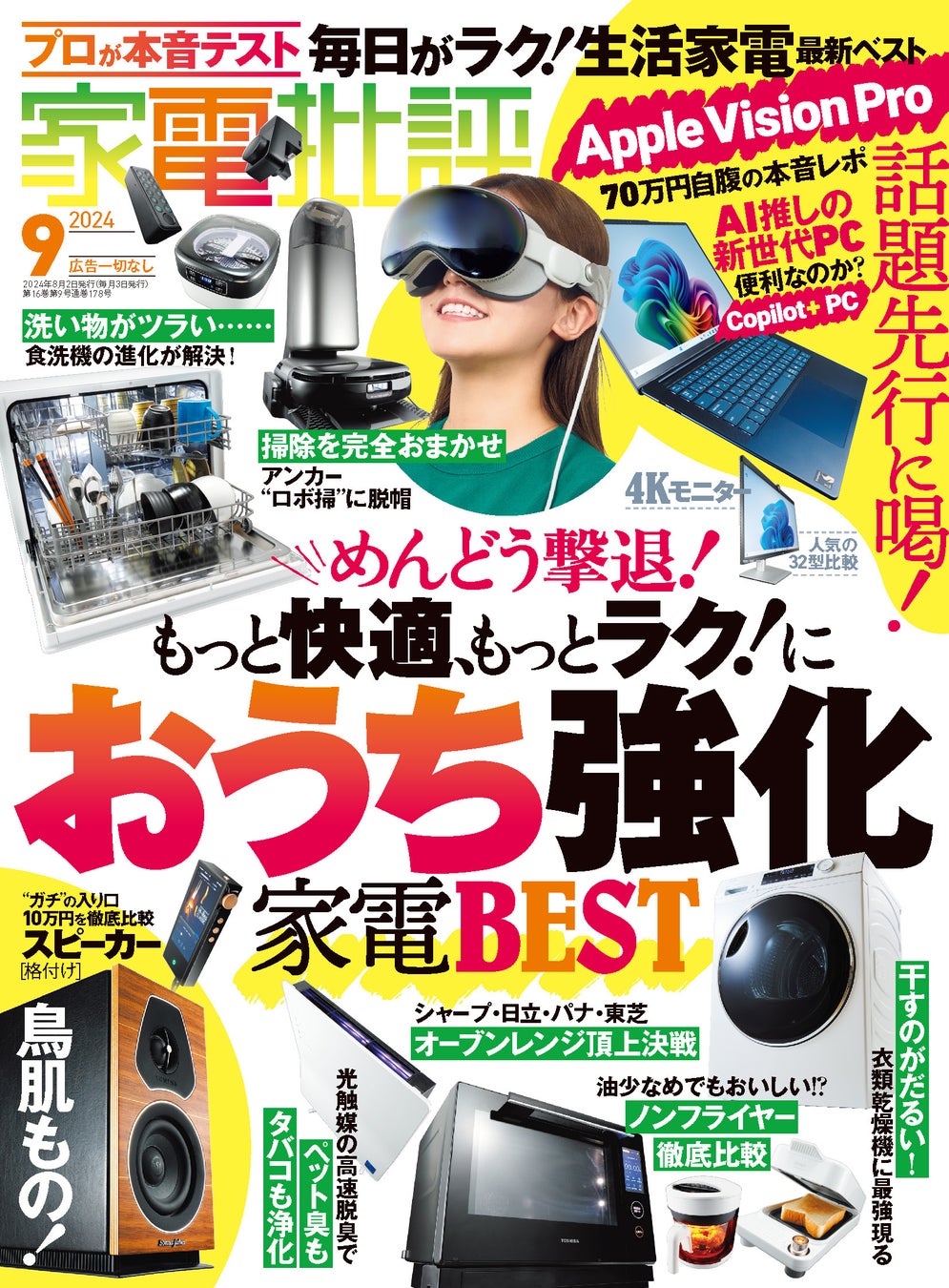 【家電批評9月号】家電でもっと家事をラクにしませんか? 最新おうち家電を検証!! 気になるAI活用向けPCも調査