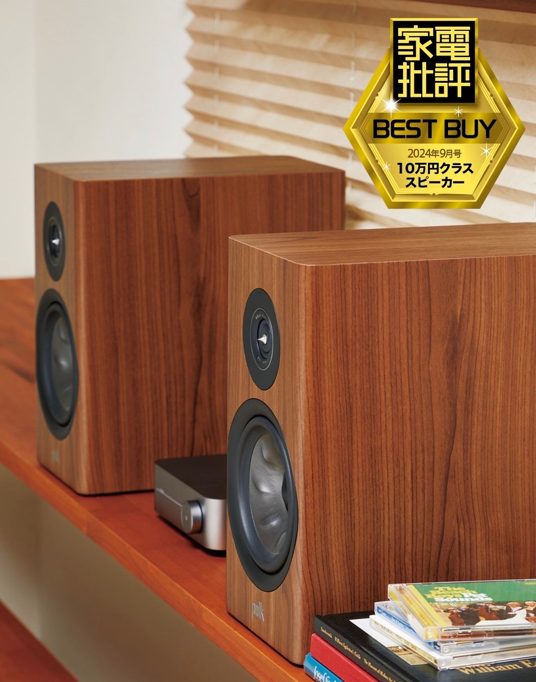 高い解像度と帯域のバランスが取れたサウンドです。ウォームな音色がこのスピーカーのよさを引き立てていて、ボーカルや楽器をつややかでなめらかに表現してくれます。今回の視聴曲の1つ、ヨルシカの「晴れる」は、サビから高域が目立ってキンキンとうるさく聞こえるスピーカーが多いなか、一番なめらかに聞こえました。なお、ハイレゾオーディオ認証を取得しているので、ハイレゾ対応のサブスク音源とも相性ばっちりです。