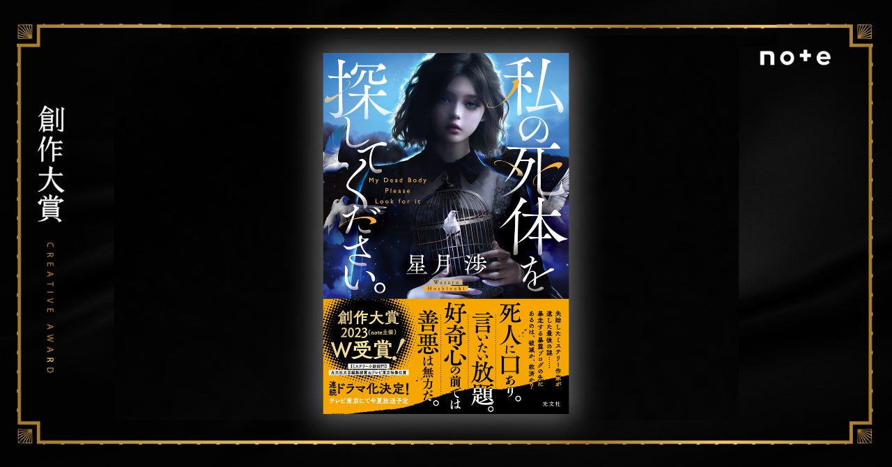 応募総数33,981件の日本最大級の創作コンテスト「創作大賞2023」で、光文社文芸編集部賞とテレビ東京映像化賞をW受賞した、星月渉さんの小説が書籍化。受賞作品に改稿を重ね『私の死体を探してください。』として、光文社より7月24日(水)に発売されます。
