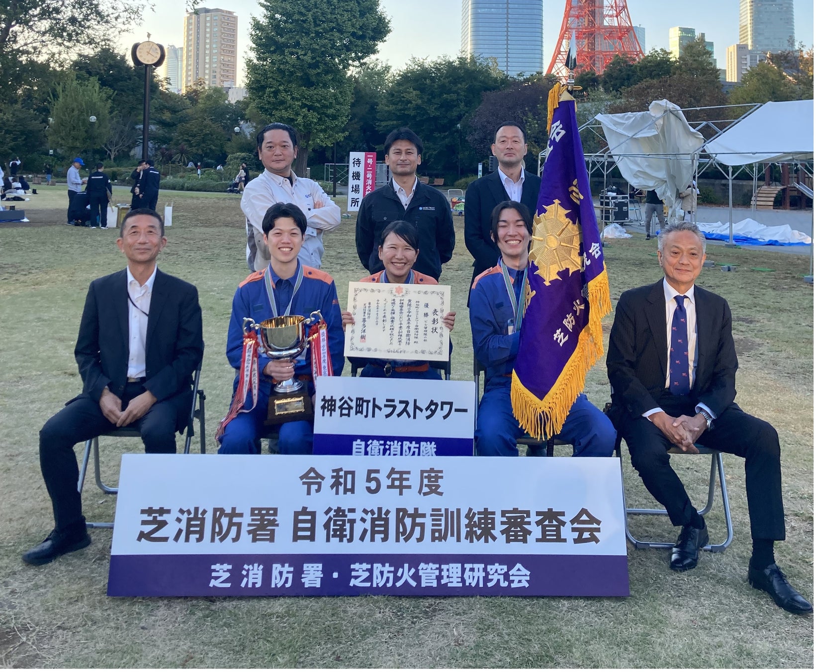 令和5年度芝消防署、品川消防署主催の自衛消防訓練審査会において、神谷町トラストタワー自衛消防隊、御殿山トラストシティ自衛消防隊が優勝しました。森トラストグループでは、管理運営施設で火災等が発生した場合の被害を最小限に抑えるために、日々訓練を重ねており、安心・安全なまちづくりの実現に取り組んでいます。