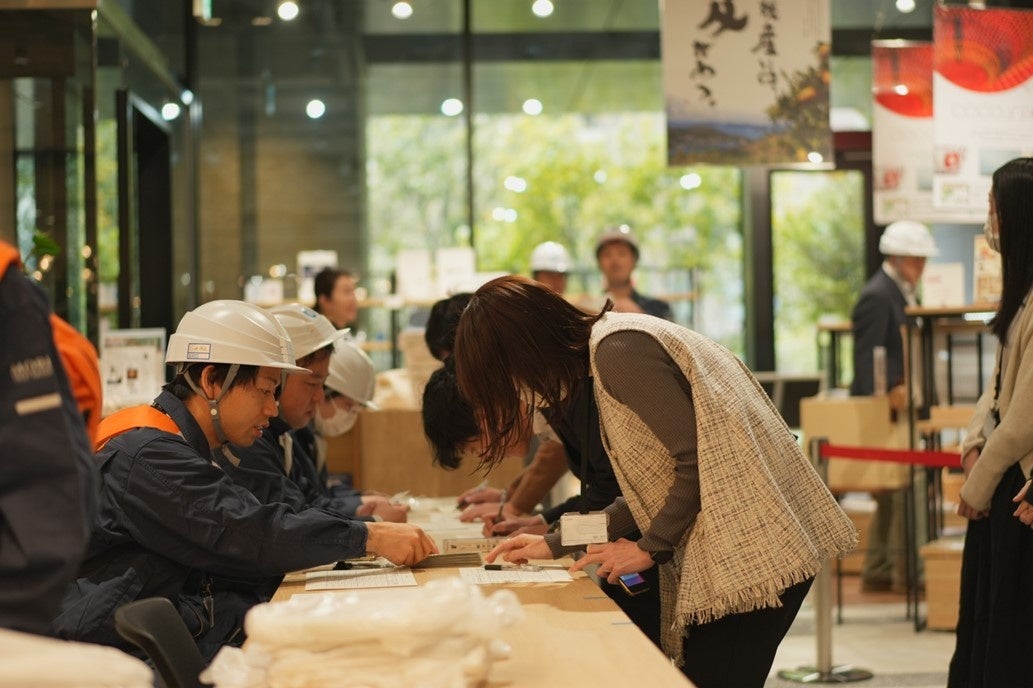 森トラストは、仙台での帰宅困難者受け入れを通じて、当社従業員の防災意識・対応力の向上が重要であることを強く認識しました。今回の訓練では、当社従業員それぞれが所定の役割を担い、「東京ワールドゲート」「丸の内トラストシティ」の2拠点、延べ5,000人超の帰宅困難者受け入れを想定した、受付対応から受け入れスペースへの誘導、備品・配給品の支給など一連の対応フローの習熟を図りました。受け入れスペースについては、当社グループが運営するカフェやラウンジ、オフィスエントランス、貸会議室等を活用し、女性専用スペースの設置や、障がいのある方、傷病者への対応が可能な受け入れ施設への変更シミュレーションを行いました。