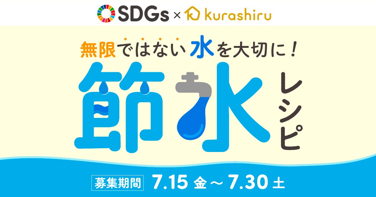 国内No.1レシピプラットフォーム「クラシル」が、限りある水を大切にする「節水レシピコンテスト」を実施
