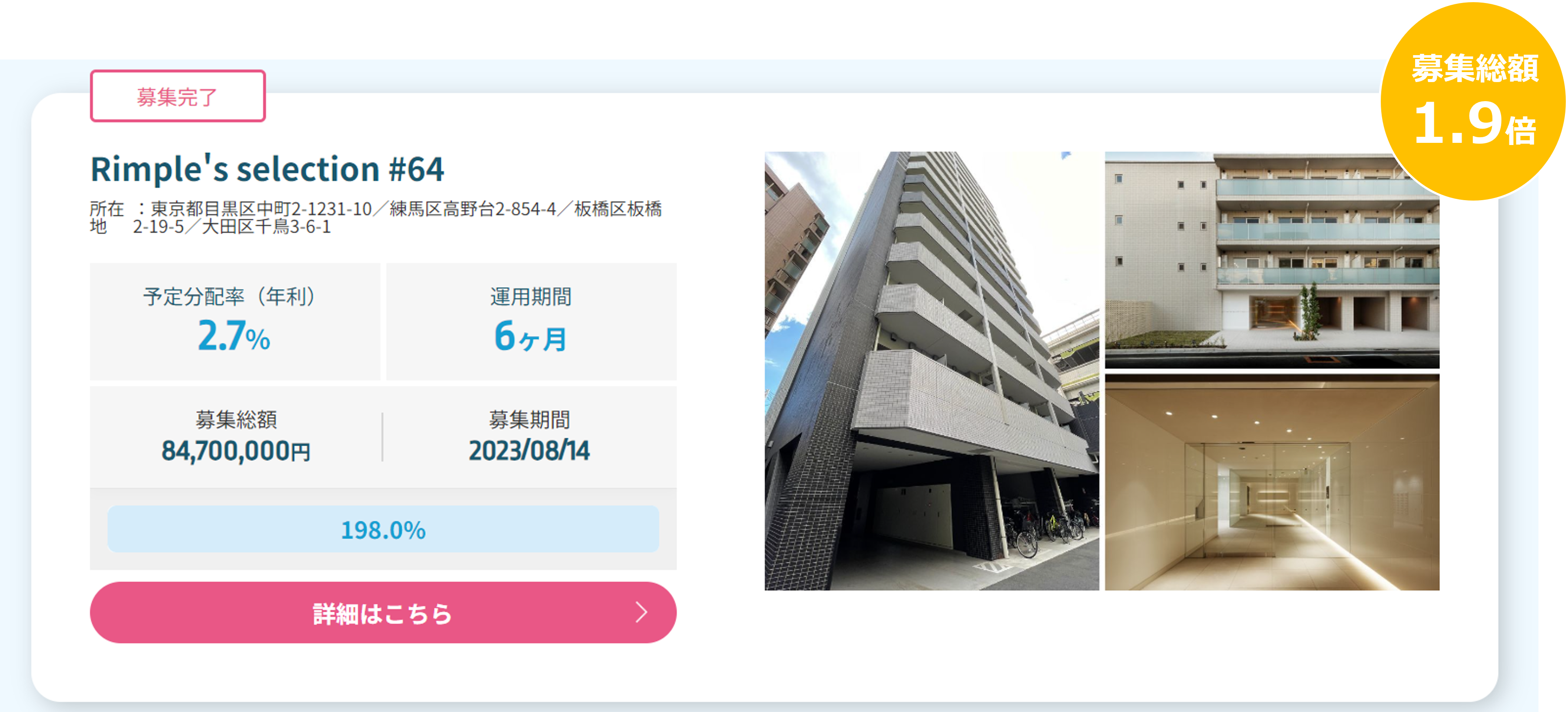 Rimple’s Selection#64 募集総額198.0%の1.67億円の応募