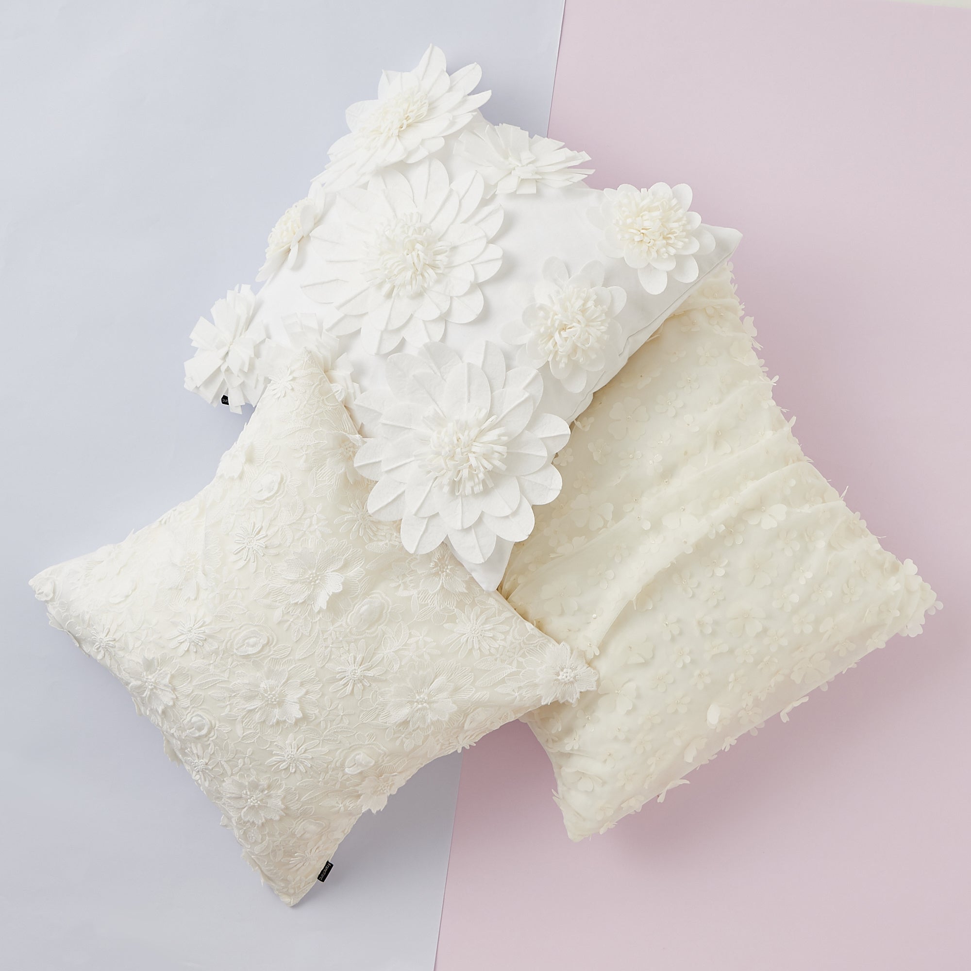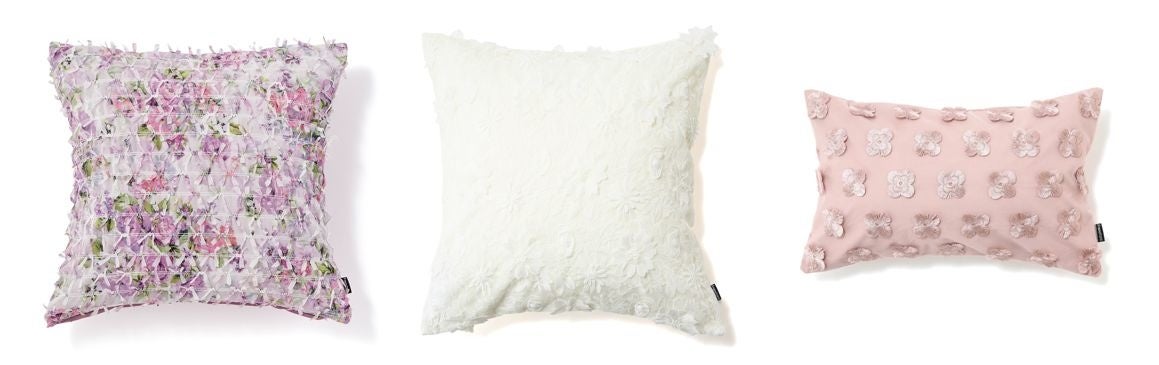 - コーディネートのポイントになる存在感抜群のフラワーモチーフクッションカバー