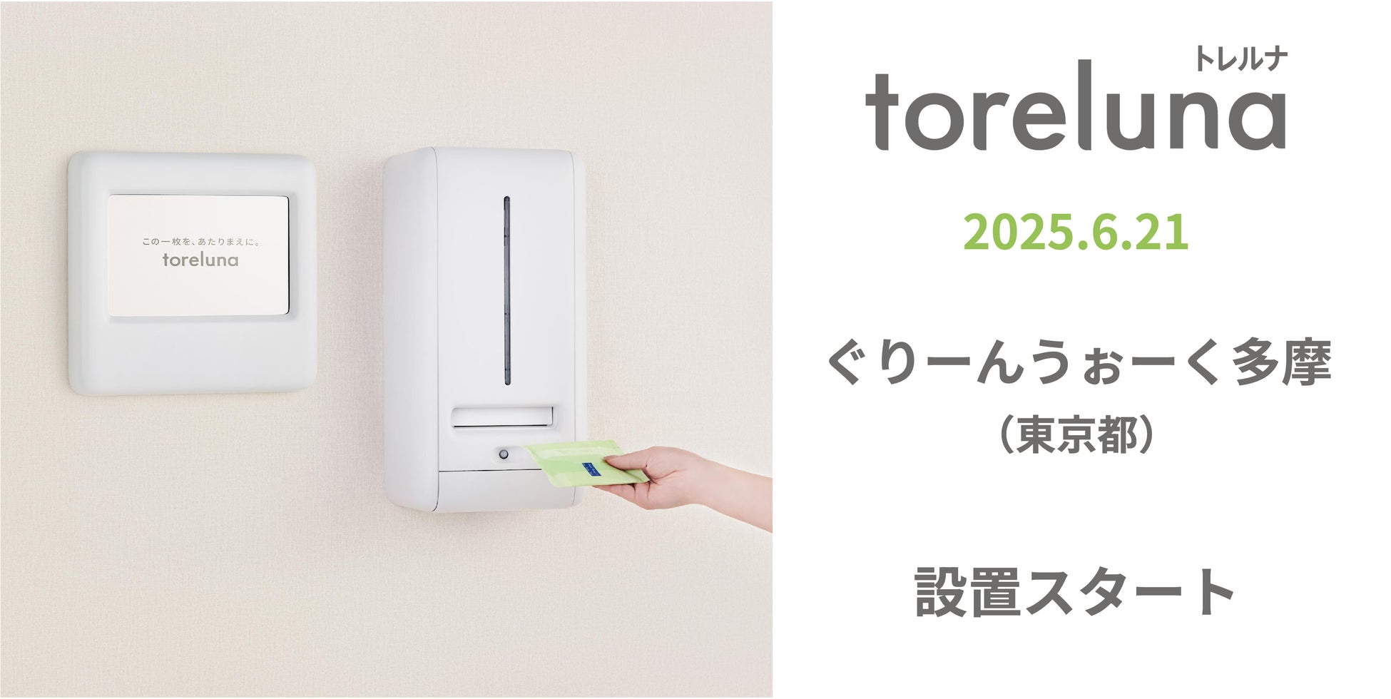 株式会社ネクイノ(大阪市北区、代表:石井 健一)は、トイレの個室で生理用ナプキンを常備し無料で提供するサービス「toreluna(トレルナ)」(以下 トレルナ)を、京王堀之内の大型ショッピングモール ぐりーんうぉーく多摩へ19台設置し、サービスの提供を開始いたしました。