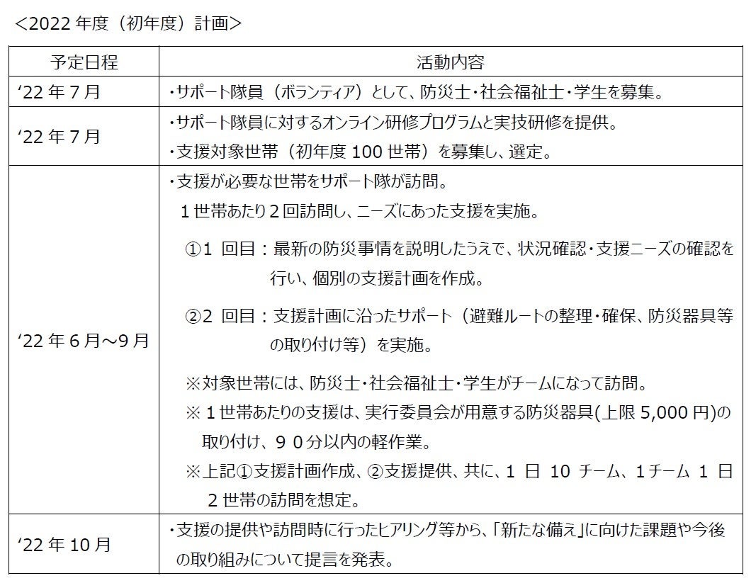 初年度として、高齢者等支援が必要な100世帯の防災に対する備えをサポートします。