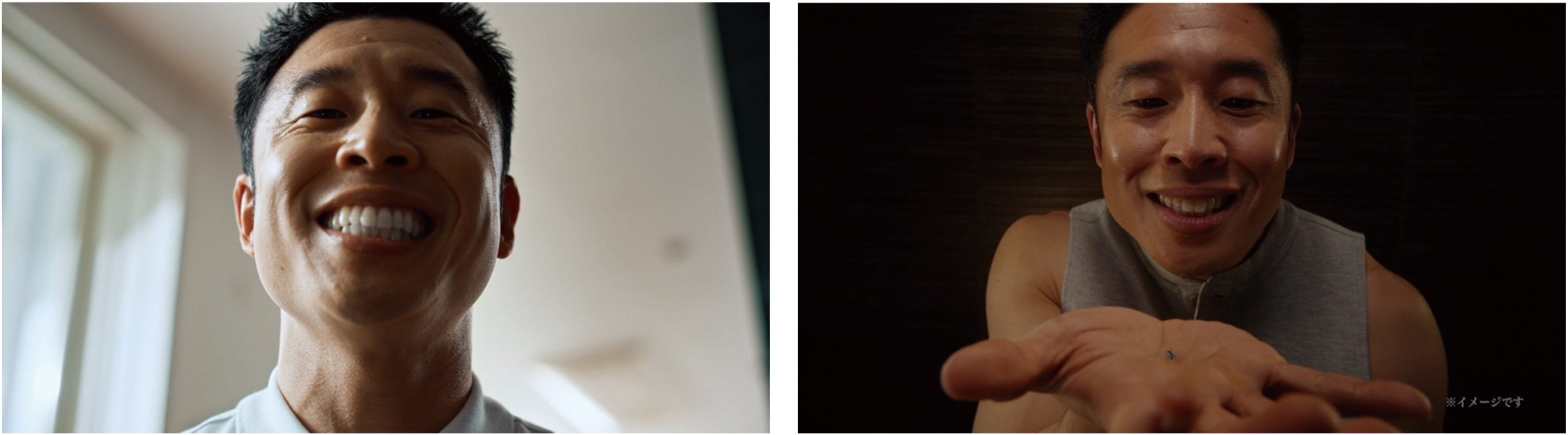 腕に力が入るシーンでは、あまりにも鍛え上げられた筋肉に「同じ人間とは思えない!」とスタッフからざわめきが上がる場面も。その鍛え上げられた筋肉で、初めてのりんごを握りつぶすシーンにも挑戦していただきました。