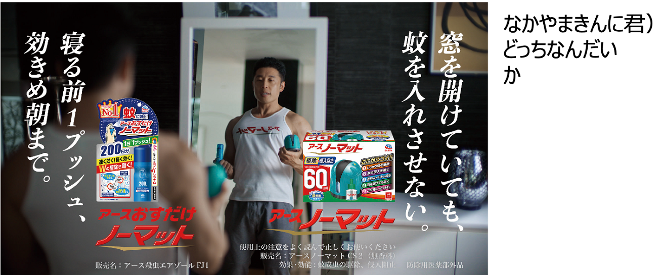 アース製薬株式会社(本社:東京都千代田区、代表取締役社長:川端克宜)は、蚊とりブランド『アースノーマット』で芸人のなかやまきんに君を起用した、新Web動画「素肌を守る 置くだけアースノーマット編」、「素肌を守る アースおすだけノーマット編」、 「どっちのノーマット 自主練編」を4月19日(火)よりアース製薬公式YouTubeチャンネルを中心に配信します。