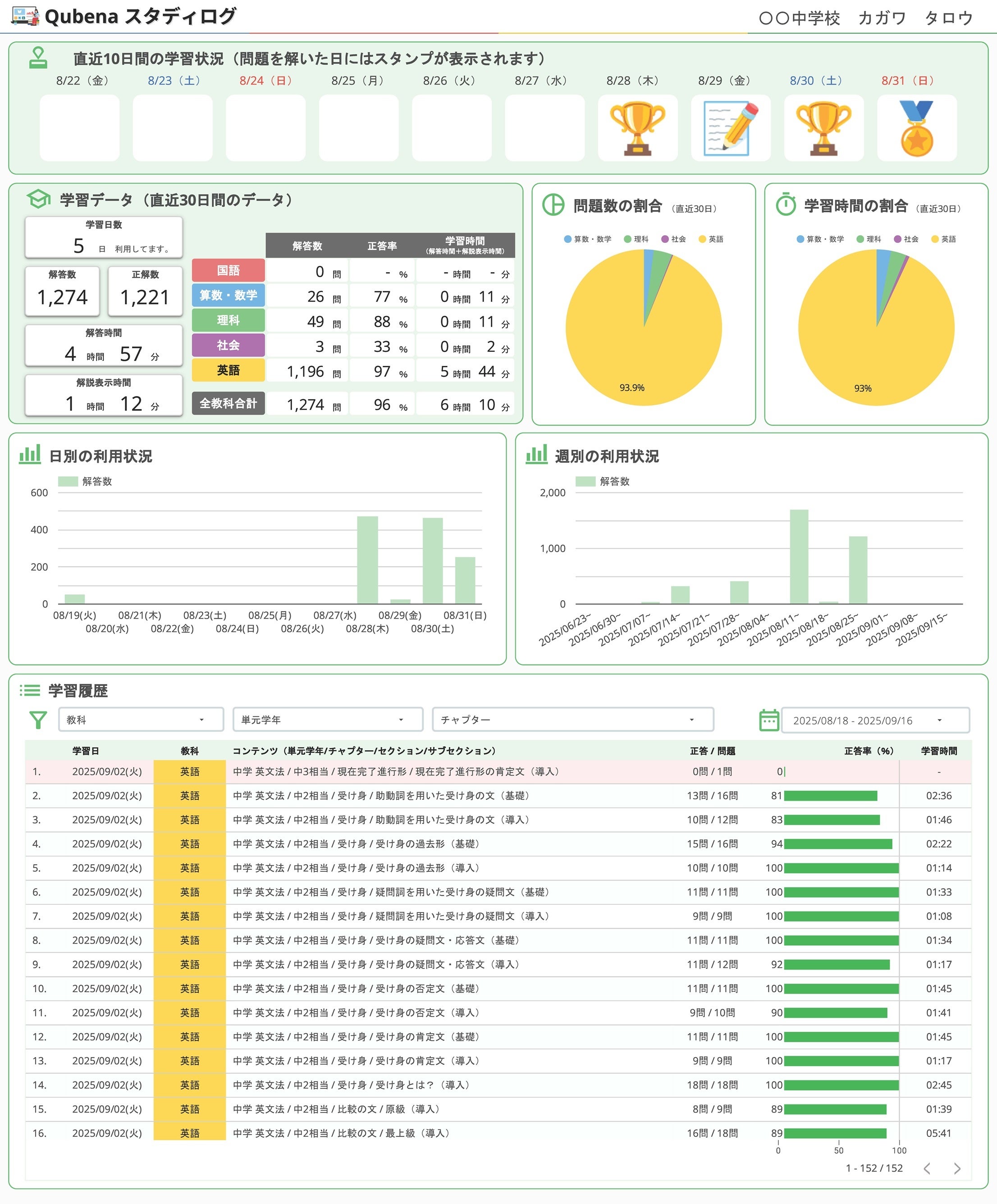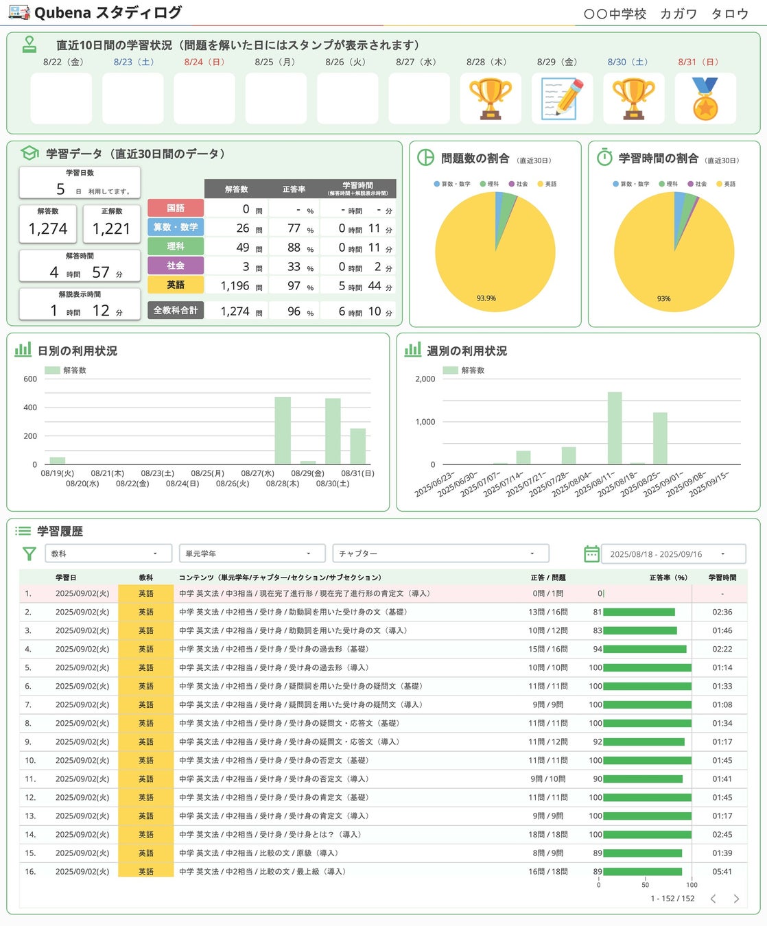 香川県内においては、以前より一部の自治体、小・中学校にてキュビナを導入・活用いただいておりましたが、このたび2026年度4月より導入が拡大され、県内市町立のより多くの小中学校においてキュビナの利用が開始されております。それに伴い、教育ダッシュボード(現在、一部学校にて実証中)へのキュビナの学習データの連携についても、2026年度中に希望する市町立小中学校に対して拡大することが予定されています。