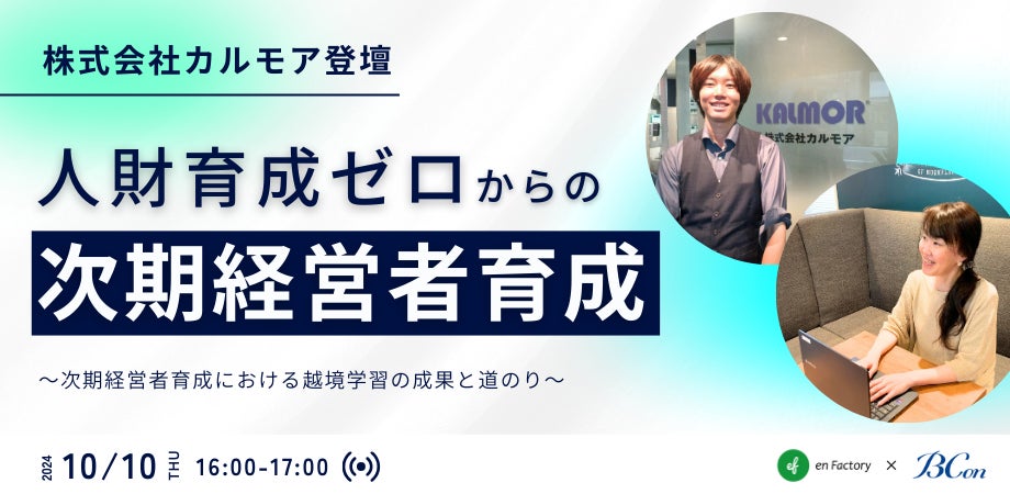 株式会社エンファクトリー(東京都千代田区、代表取締役社長CEO加藤健太)は、株式会社ビジネスコンサルタント(東京都千代田区、代表取締役 社長執行役員大村昌平)とともに、2024年10月10日(木)16:00~17:00に『人財育成ゼロからの次期経営者育成~次期経営者育成における越境学習の成果と道のり~』を開催します。