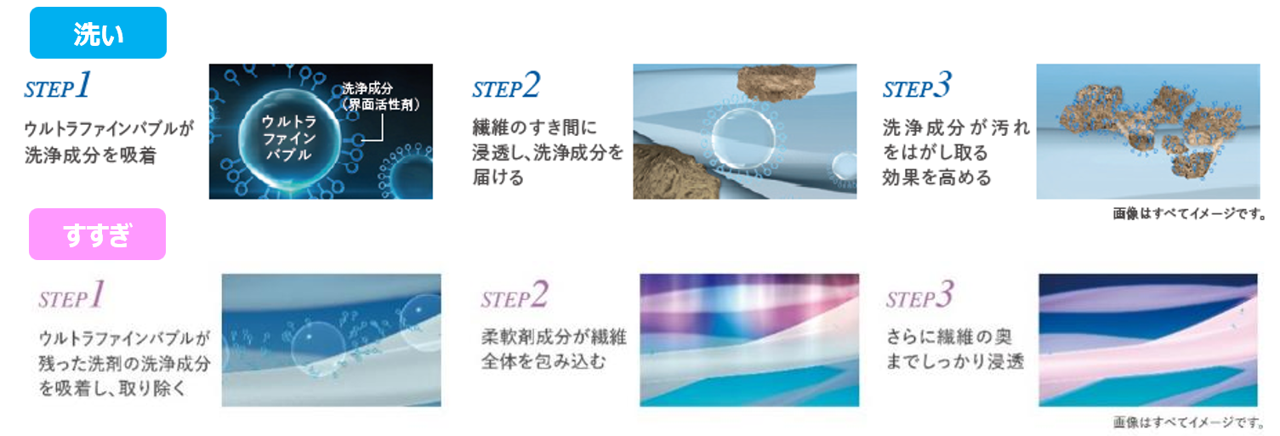 また、洗濯のたびに「Ag⁺抗菌水」で衣類を抗菌[※3]して部屋干し臭の原因菌が繁殖するのを防ぎます。