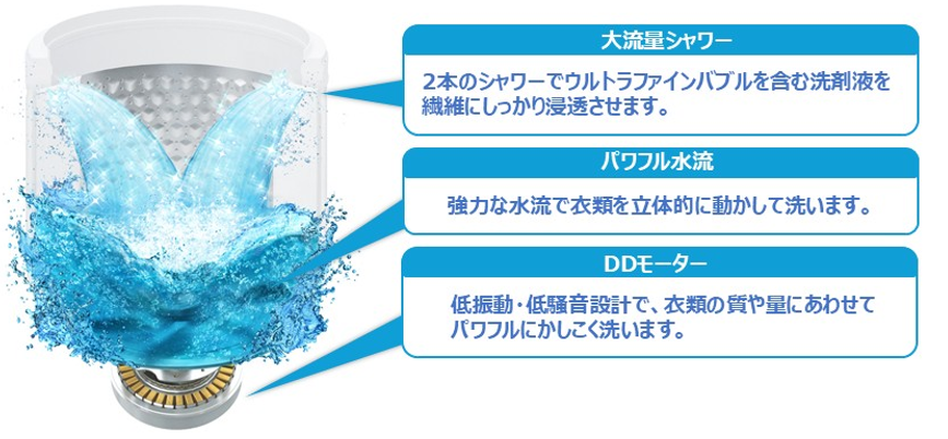 3.「抗菌ウルトラファインバブル洗浄W」と「大流量シャワー」による高い洗浄力