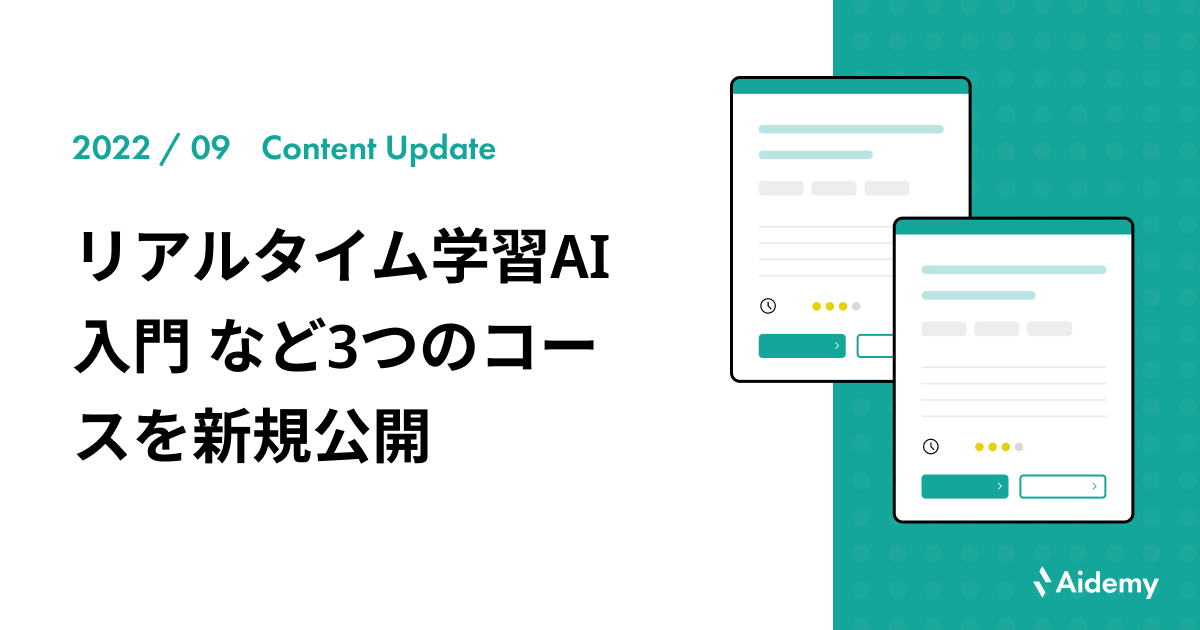「リアルタイム学習AI入門」など3つのコースを新規公開
