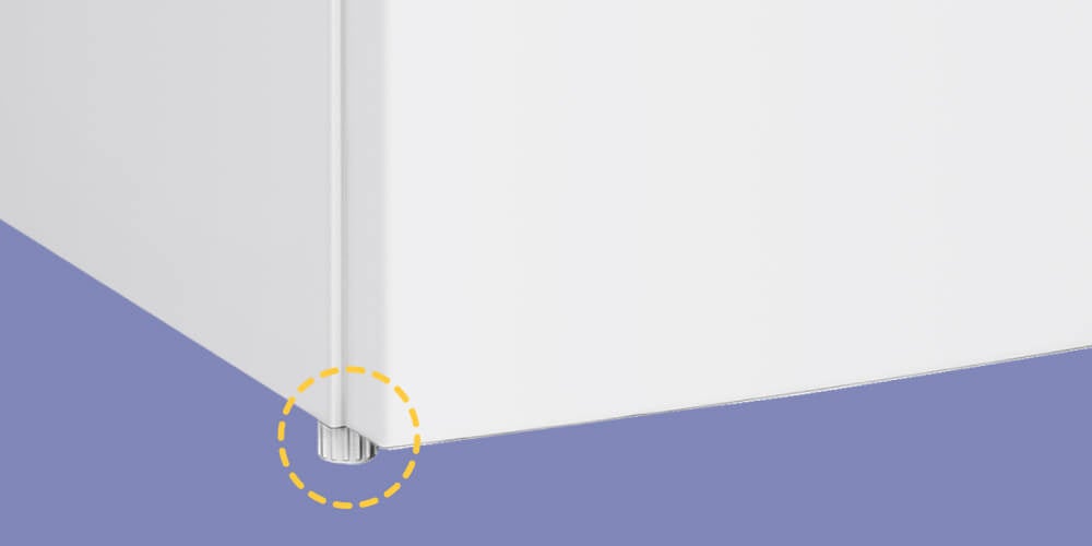 本体底面には、高さを調節して本体を水平に調整することができる調節脚が取り付けられております。また、底面の設置面積が減少するため、床へのダメージを防止いたします。