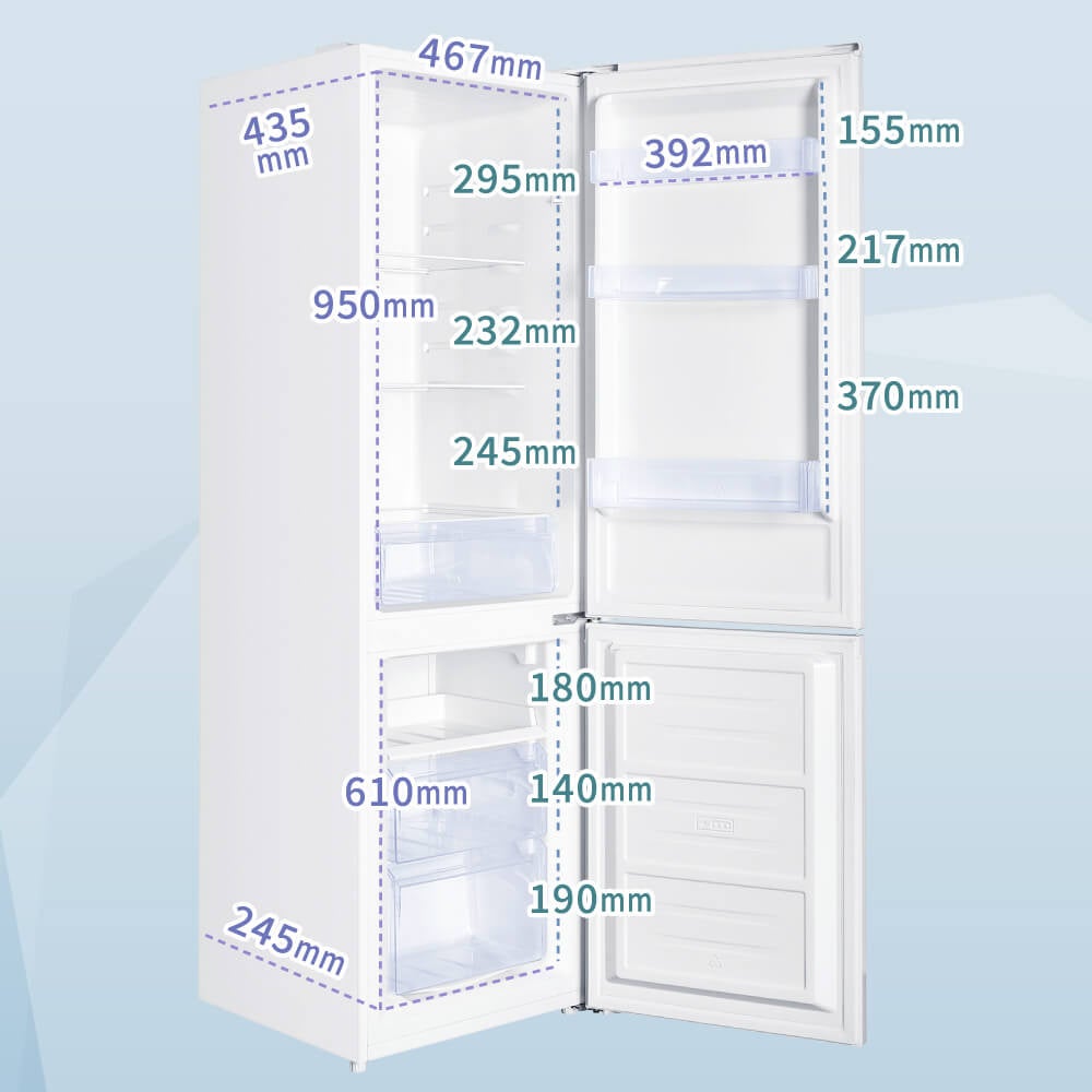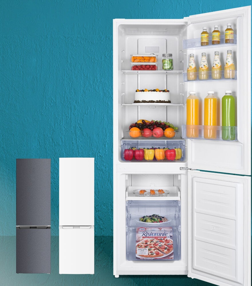 2ドア冷凍冷蔵庫253L(JR253HM01)は、控えめな大きさのキッチンでも収まりやすいスリムなサイズにもかかわらず、確かな収容力を兼ね揃えた製品です。買いだめした食材や飲み物、冷凍食品、アイスなどを、場所を取らずにたっぷり保存できます。
