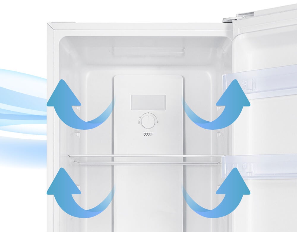 冷気を全体的にムラなく広げ、自動で霜取りを行うファン式自動霜取り機能を搭載しており、お手入れが簡単になっております。