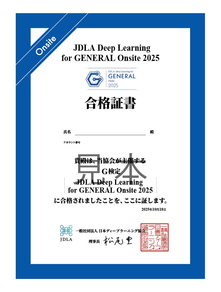 【一般社団法人日本ディープラーニング協会】会場試験 「G検定 Onsite 2025」結果発表