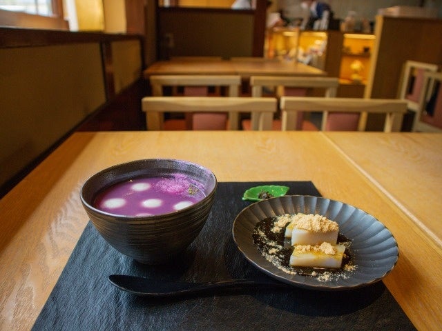 藤まつりに合わせて藤色に!新商品「天神藤あんみつ」と「藤のおしるこ」を亀戸天神前本店にてご提供いたします。