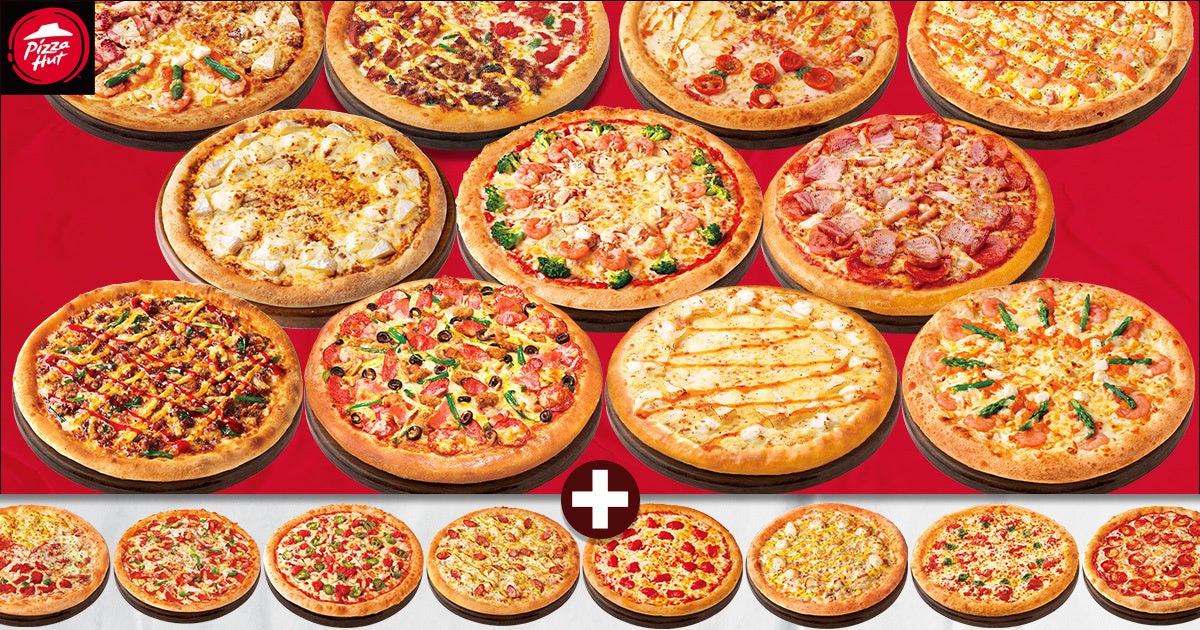 「こだわり食材のシェフズ4」「ピザハット・ベスト4」「贅沢グルメ4」「海老マヨ明太ベーコン」「カマンベールの贅沢ミートソース」「シーフードミックス」「ジューシー厚切イベリコ」「新・特うまプルコギ」「スーパー・シュプリーム」「とろける4種チーズのフォルマッジ」「濃厚オマールソースのシーフード」