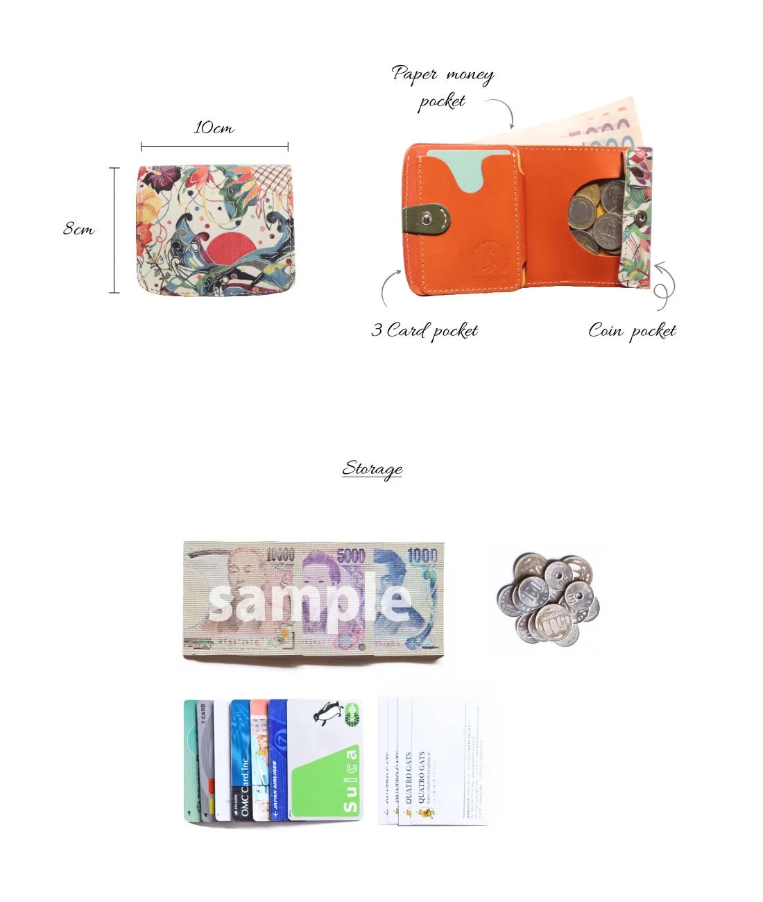 手のひらサイズだけど、お札:約10~20枚・コイン:約20~30枚・カード:約4~6枚を収納でき、旅行やミニバッグを使いたいときにもぴったりです。