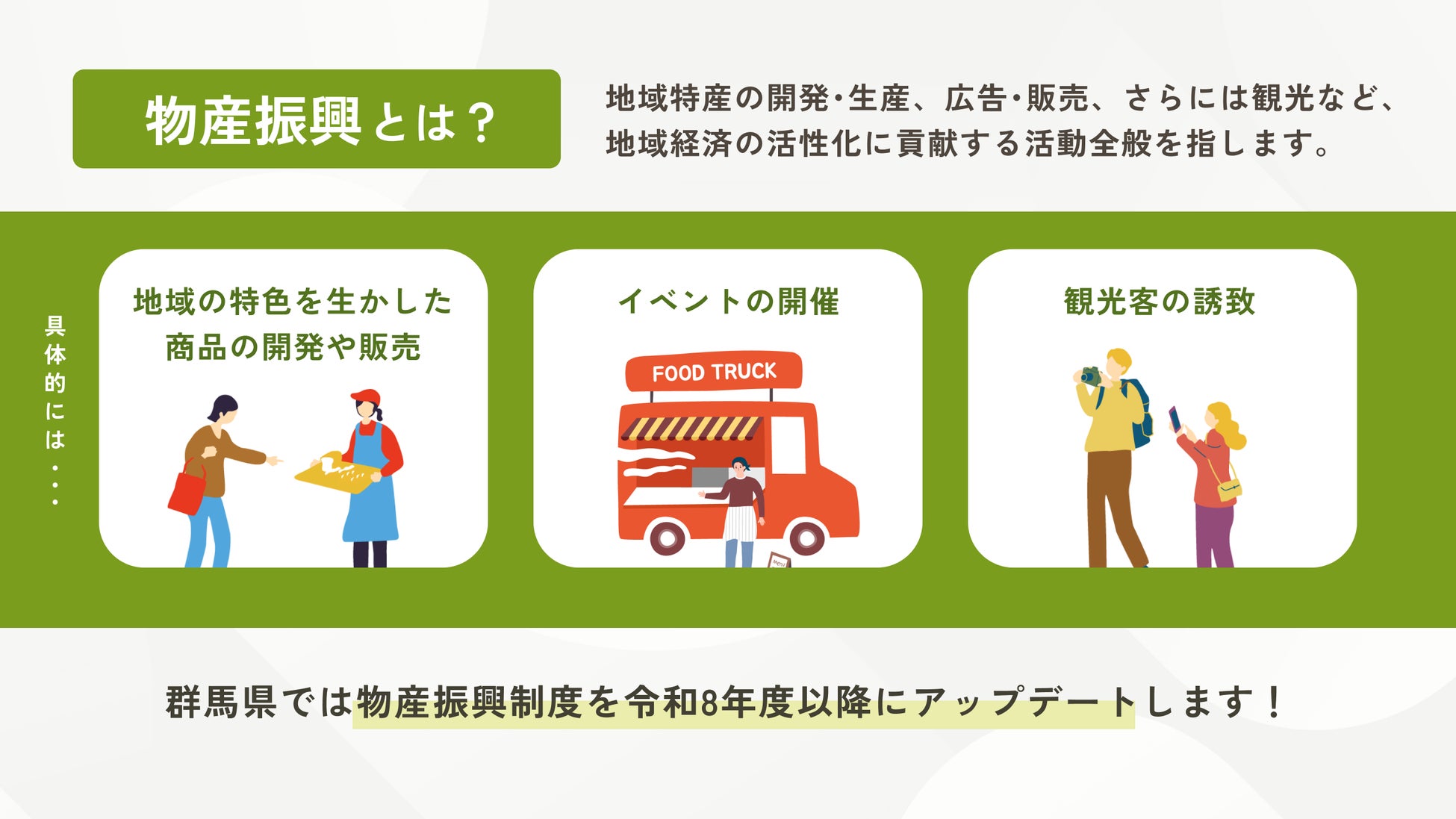 群馬県は、最先端の思考や手法をいち早く取り入れ、時代に合った政策立案をできるよう「官民共創による政策実現のためのコミュニティ等企画運営業務」を実施しています。今回は「物産振興」に関する意見を募集します。