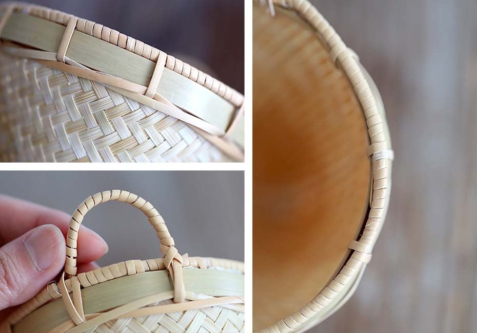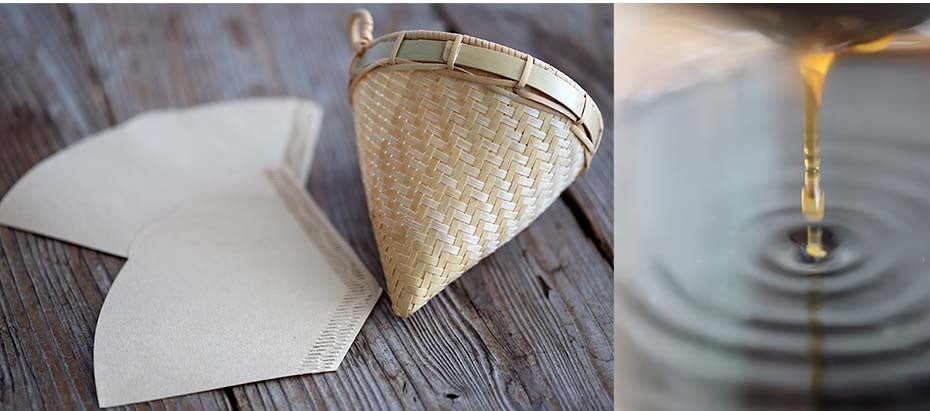 軽量で扱いやすく、市販のコーヒーペーパーフィルターに対応。完全手作業で製作されているため、編み目や色合い、竹の節の出方には一つひとつ個性があり、一点ものならではの風合いとしてお楽しみいただけます。