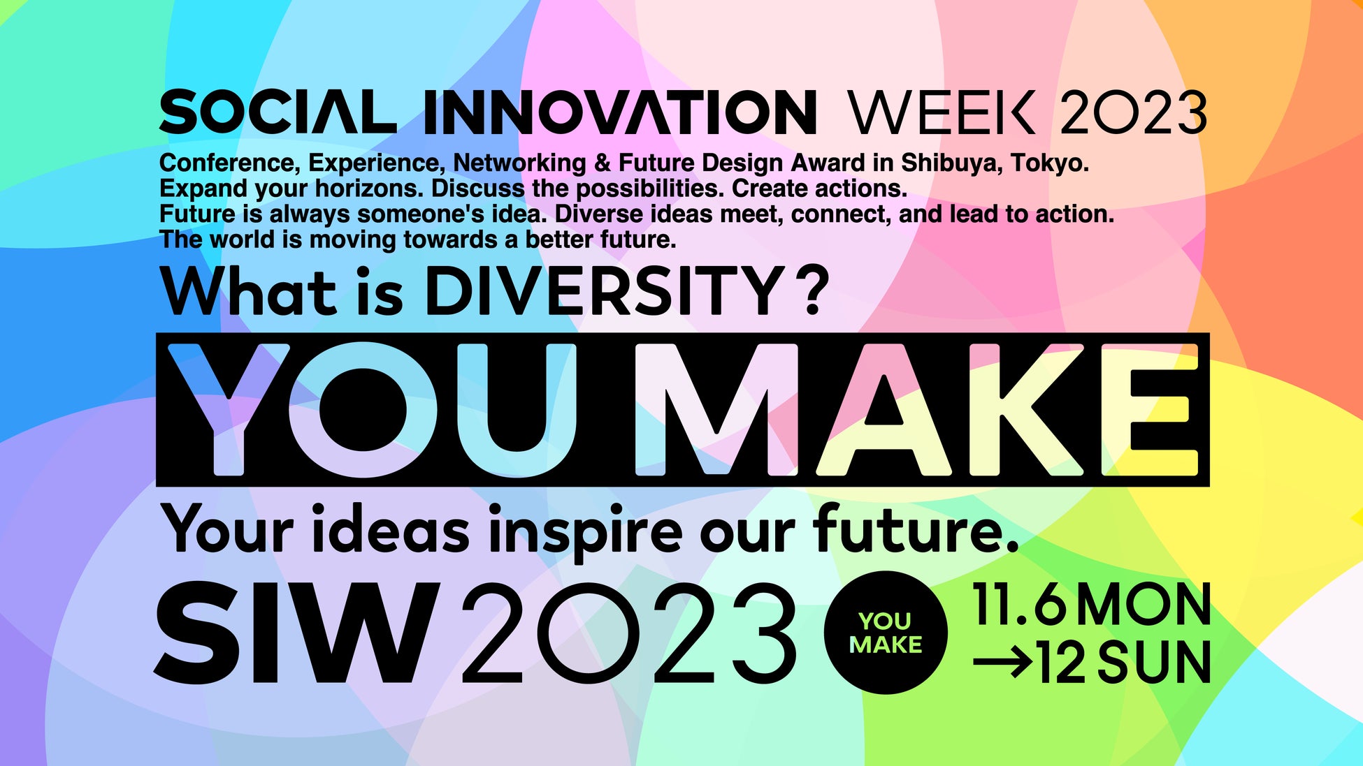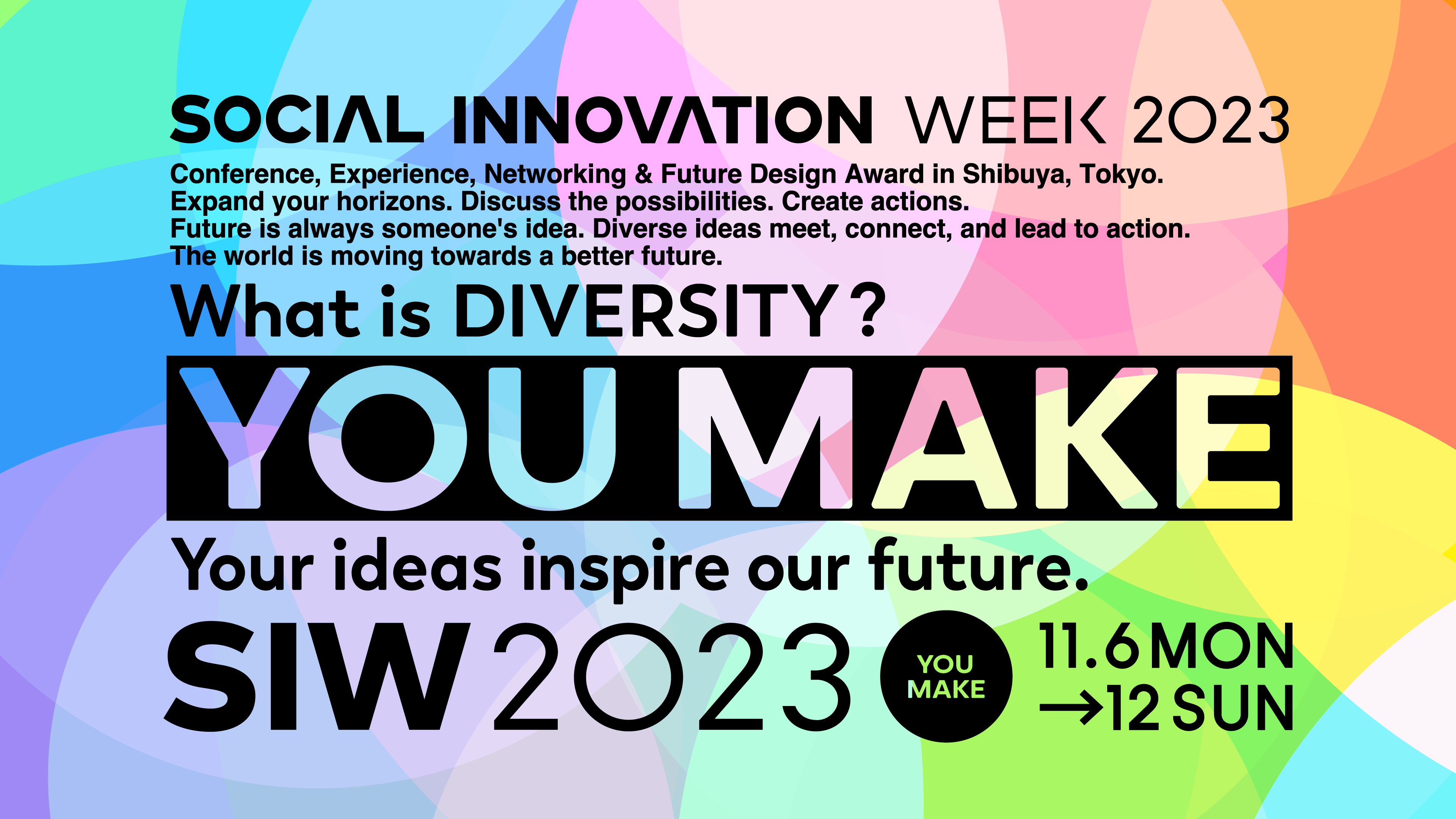 一般社団法人渋谷未来デザイン(以下、渋谷未来デザイン)は、あらゆる観点や多様性を受け入れる渋谷を起点にはじまったソーシャルイノベーションの祭典「SOCIAL INNOVATION WEEK 2023」(以下、SIW)を2023年11月6日(月)〜11月12日(日) に開催します。6年目を迎えるSIWは、「YOU MAKE」をタグラインに掲げ、渋谷区、パートナー企業、サポーターや参加者全てが「つくり手」となっていくことで、多様で多視点なアイデアや価値観が集まり、交流し、形になる場として実施します。