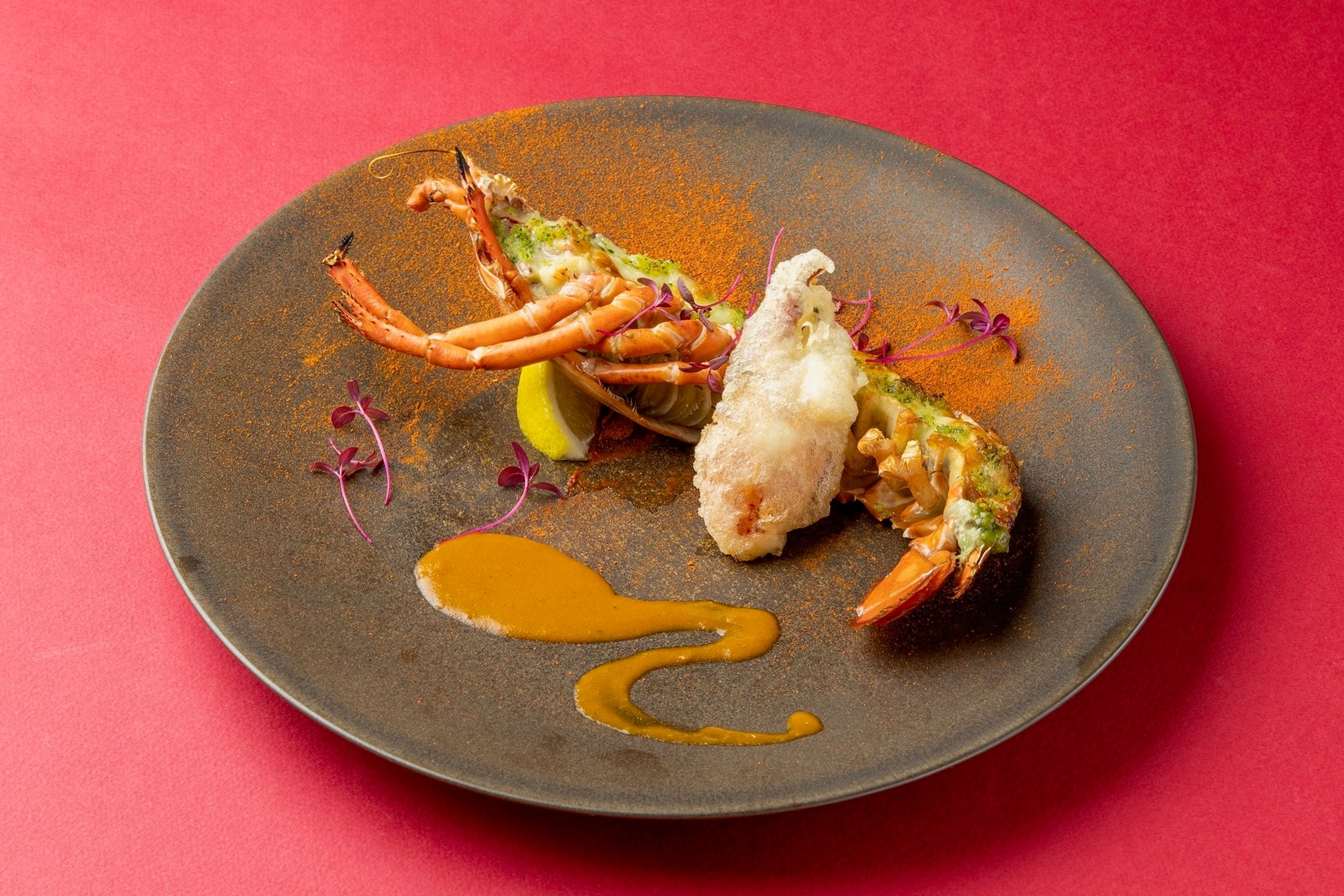 オマール海老のグラティナーレとその爪のフリット アメリケーヌを添えて