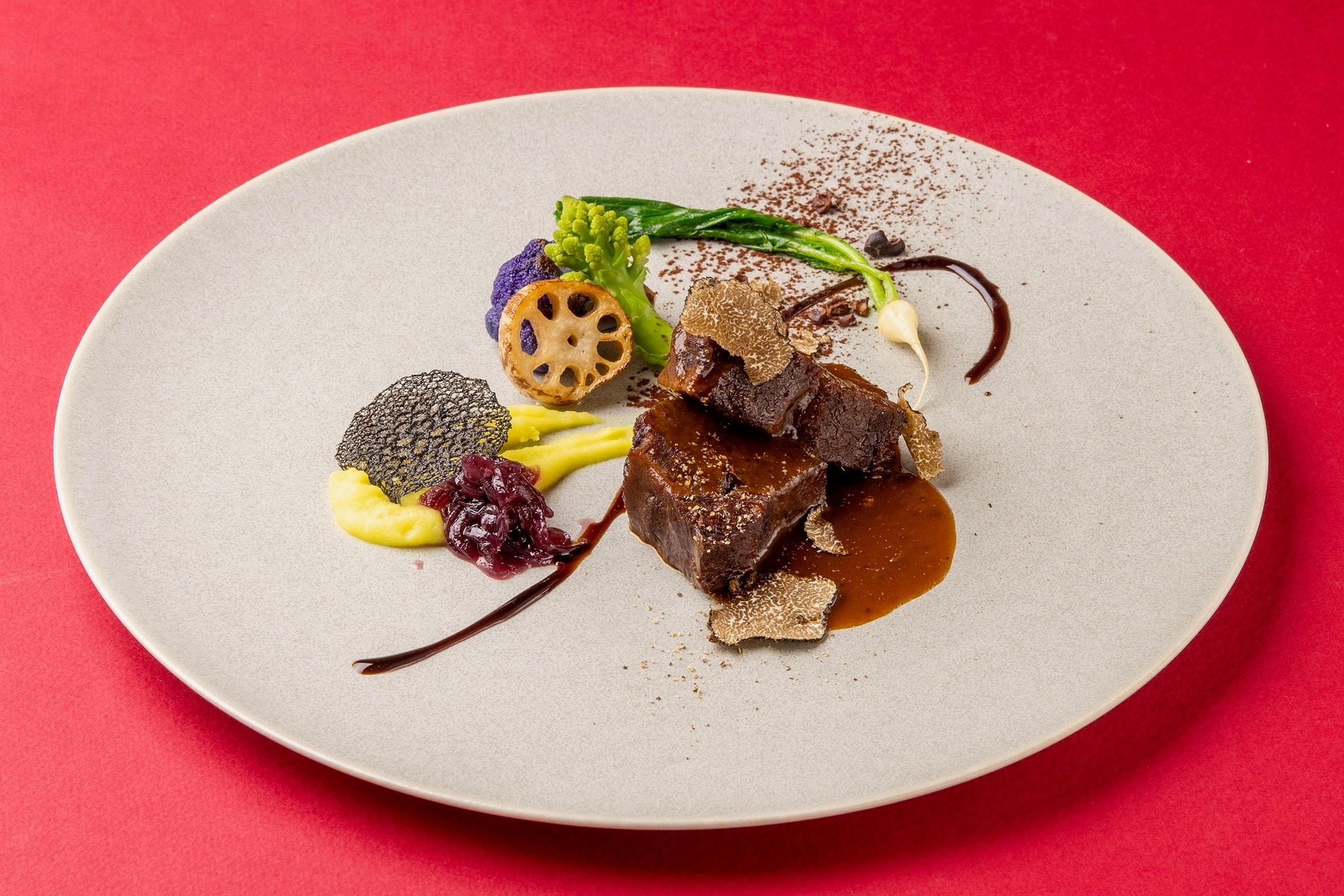 バルバレスコで煮込んだ、国産牛ほほ肉の赤ワイン煮込み