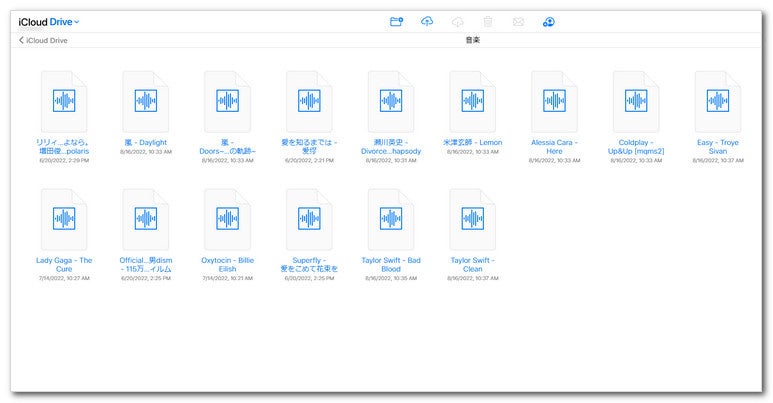 ここでは、PC上の音楽の例を示します。