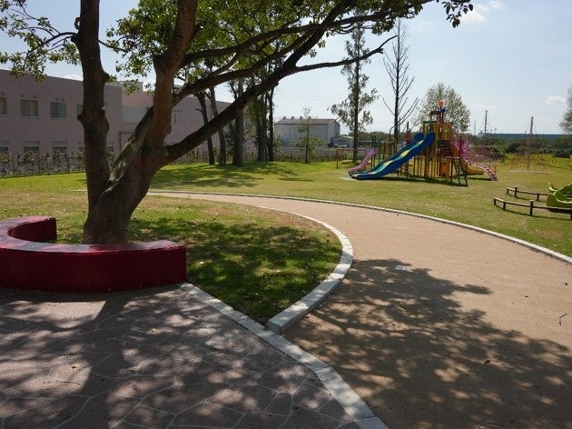 整備を行った結果、明るく子どもたちが集う広がりのある空間が完成。2箇所の駐車場