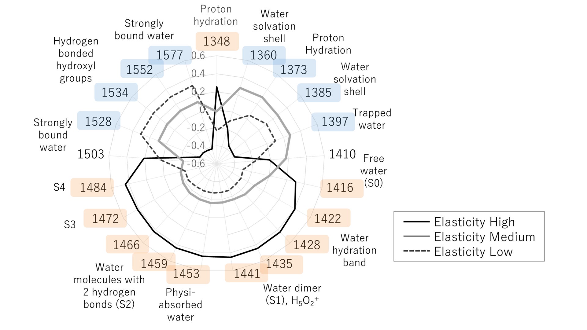 本研究では、肌のハリごとに水の状態に特徴的な違いが表れることを明らかにしました。